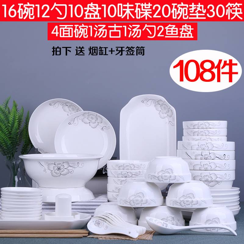 碗碟套装108件家用陶瓷大号汤碗筷饭面碗盘创意个性轻奢餐具之满
