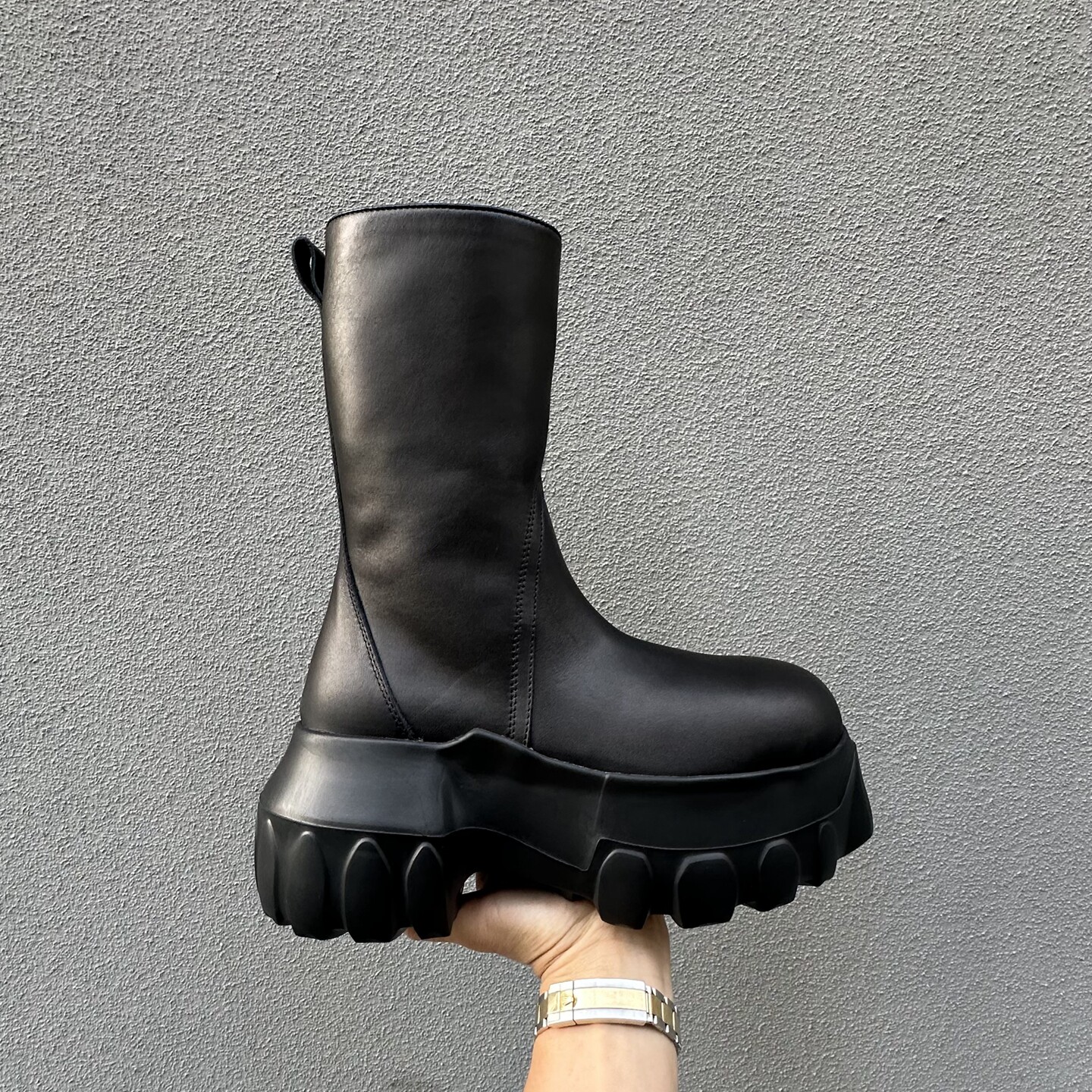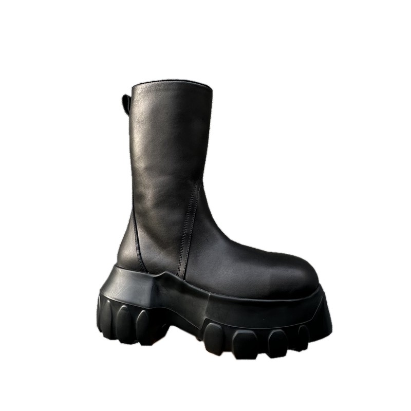 R0高帮厚章鱼底街潮侧拉链男女骑士靴大头靴子恨天高10CM内增高鞋