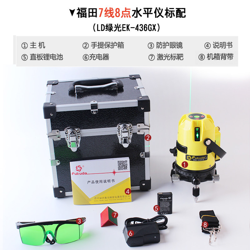 fukuda福田激光水平仪LD绿光7线8点自动安平锂电436GX投线仪360度