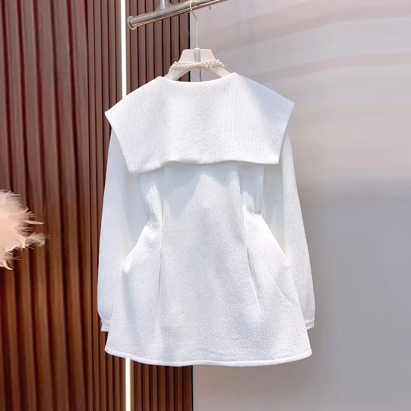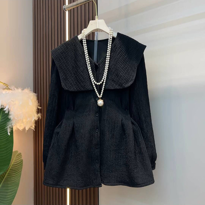 2025春季新款欧洲站大码女装胖MM时尚披肩领潮流收腰褶皱女人衫潮