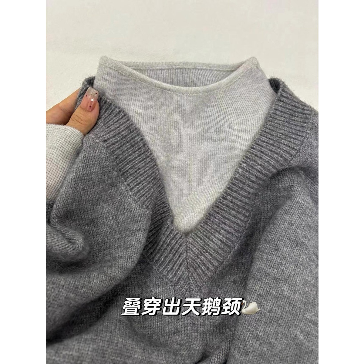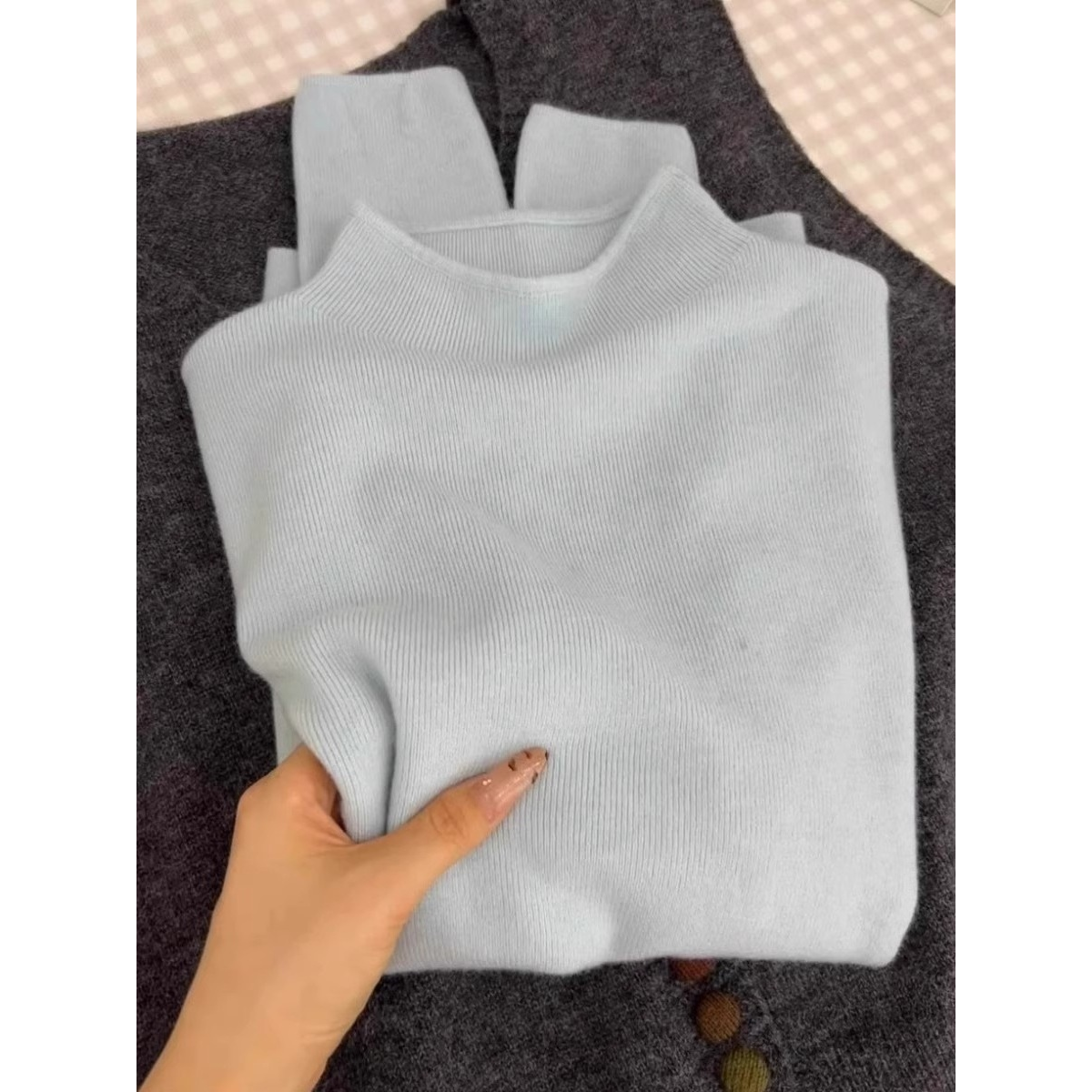 巨显气质软糯亲肤叠穿灰色打底衫女秋冬内搭毛衣半高领针织衫上衣