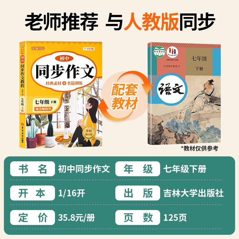 2026年七年级下册同步作文人教版 初中语文初一7上教辅资料满分作文优秀高分范文素材精选中学生部编教材全解全套初中生作文书大全