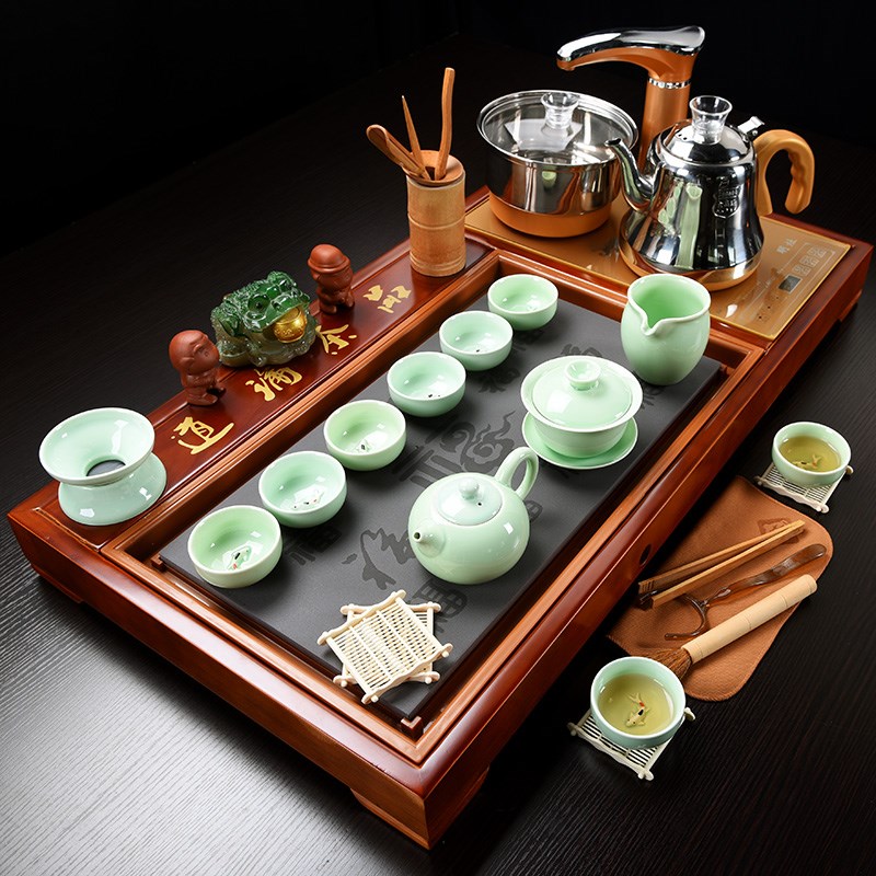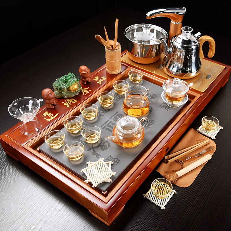 古弘茶具套装家用简约实木茶盘整套全自动功夫茶台茶道杯茶海紫砂