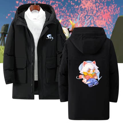 sky光遇游戏周边长袖白鸟平菇男女情侣可定制中长款羽绒服二次元