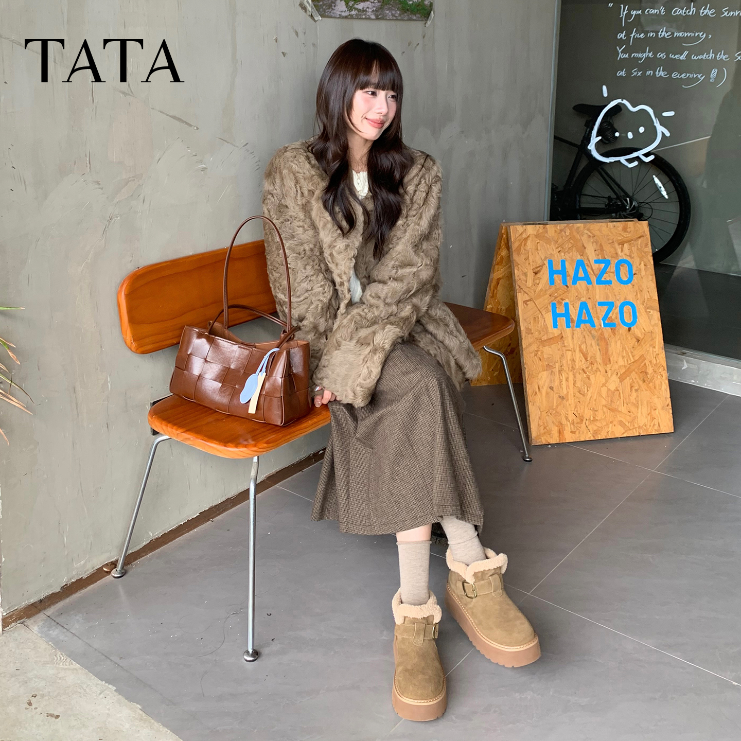 TATA他她雪地靴2025冬鞋加绒棉鞋百搭女鞋勃肯厚底棉靴子JXK01DD5