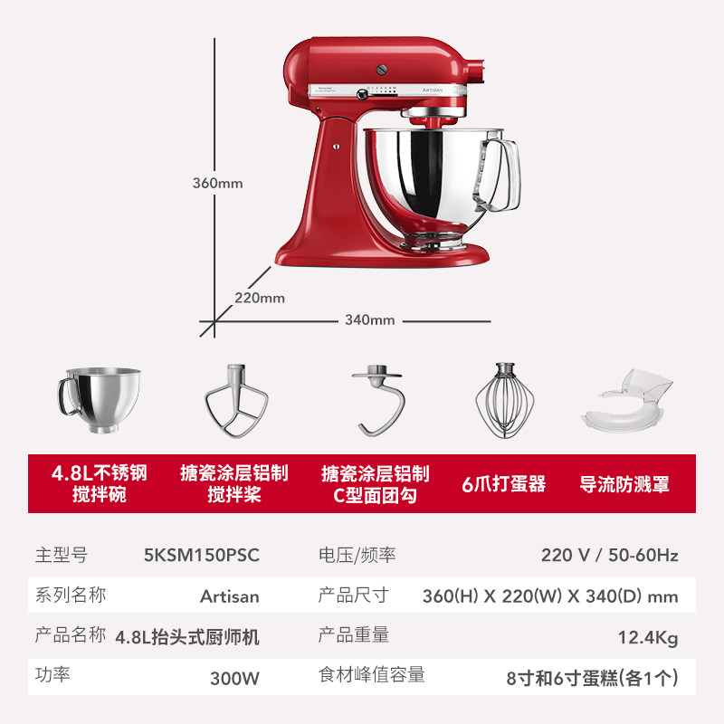 凯膳怡kitchenaid厨师机家用台式多功能全自动小型搅拌和面发面机