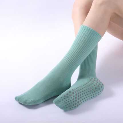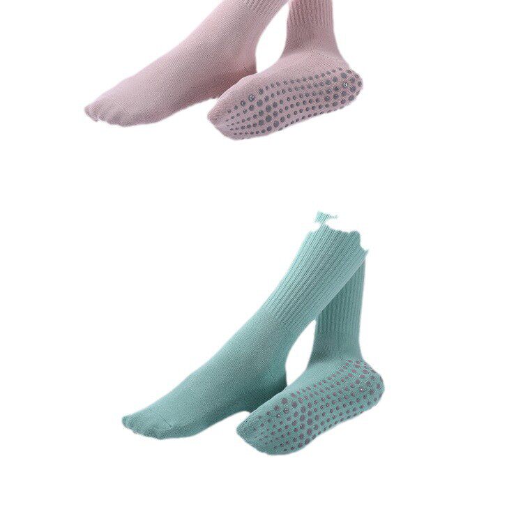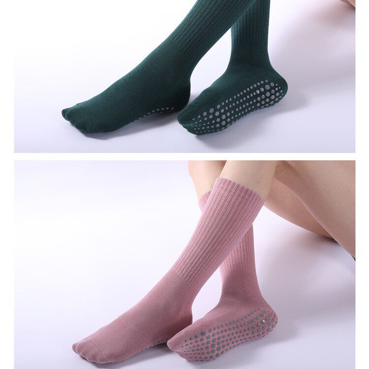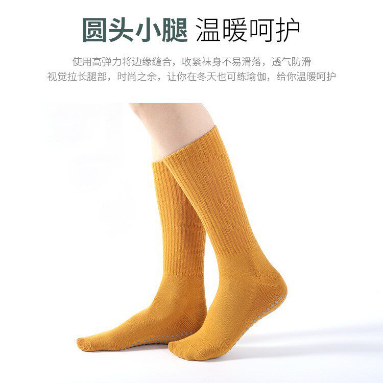 新款秋冬中长筒微压保暖瑜伽袜普拉提袜子全包女士毛圈加绒厚胶印