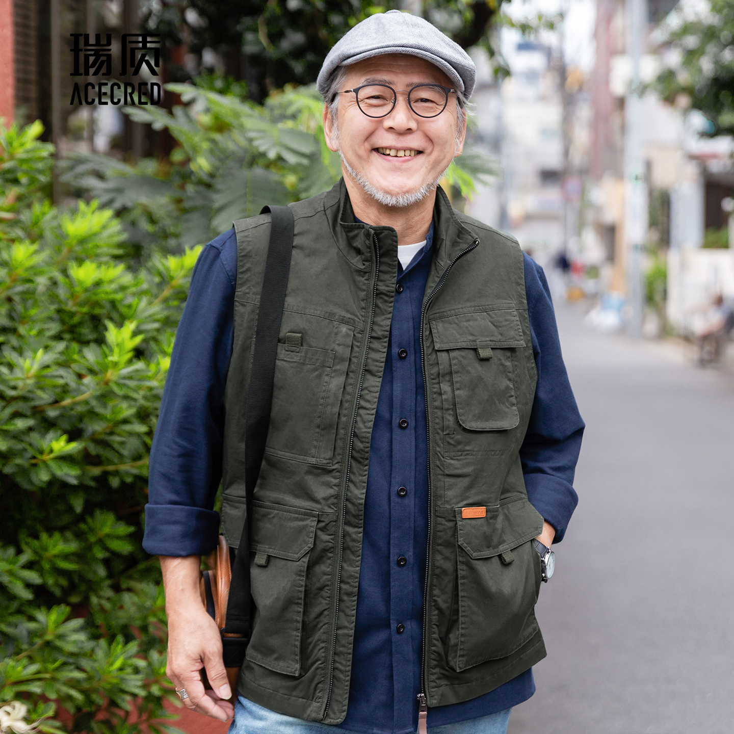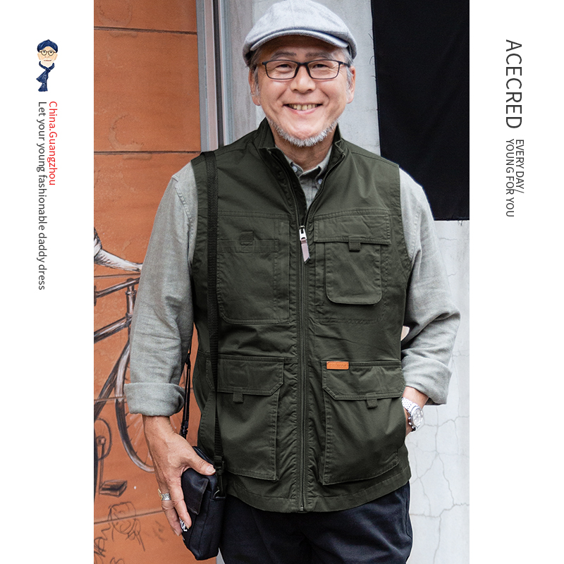 中老年钓鱼马甲男春秋季马夹老人多口袋坎肩爸爸秋装外套爷爷背心