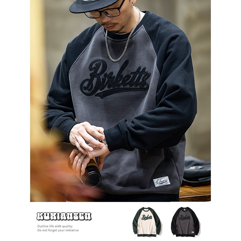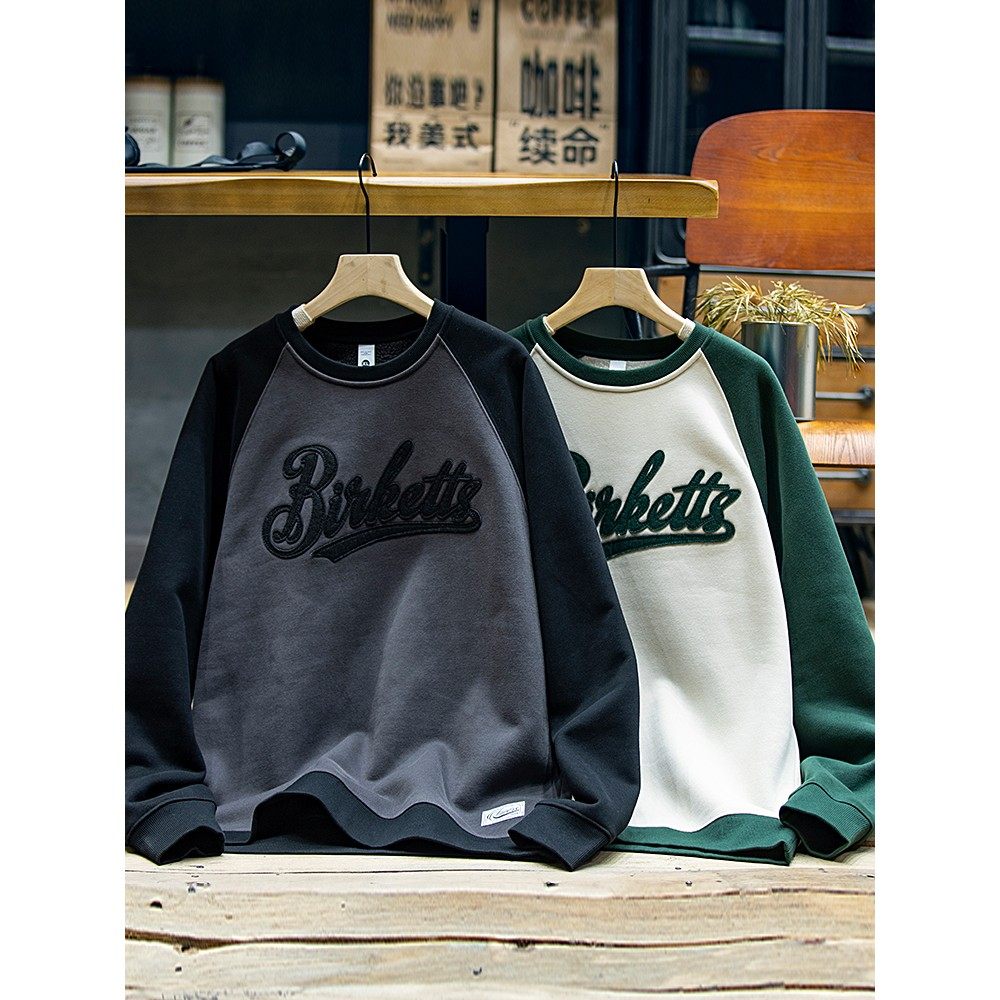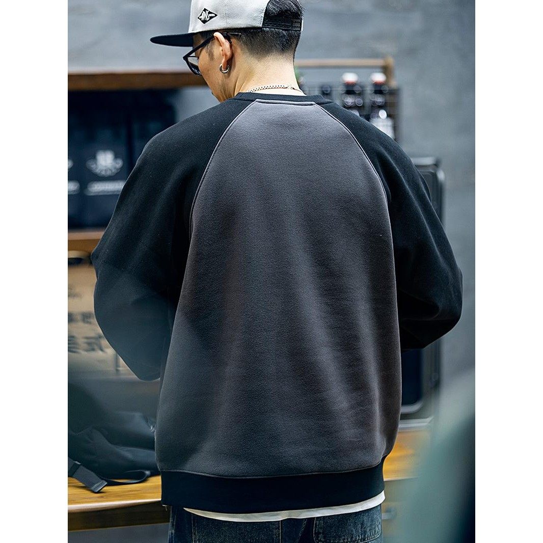 360g美式卫衣男秋季宽松潮牌大码圆领上衣男士撞色休闲外套潮春秋