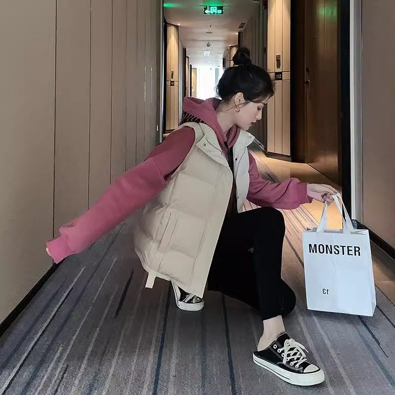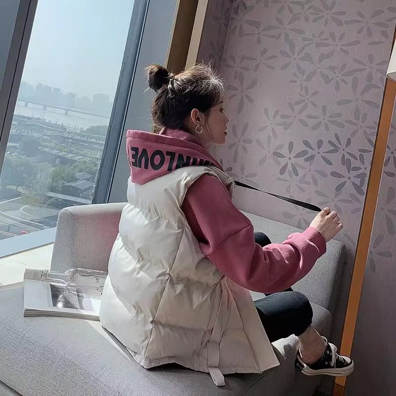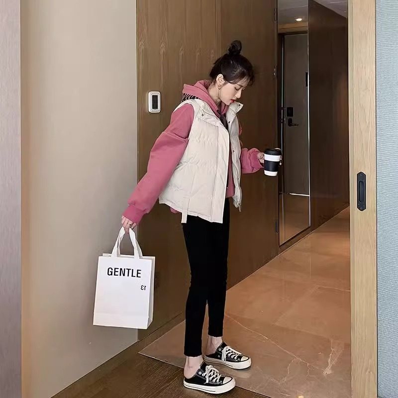 羽绒棉衣马甲女冬2025新款学生立领短款加厚白色外穿马夹背心外套