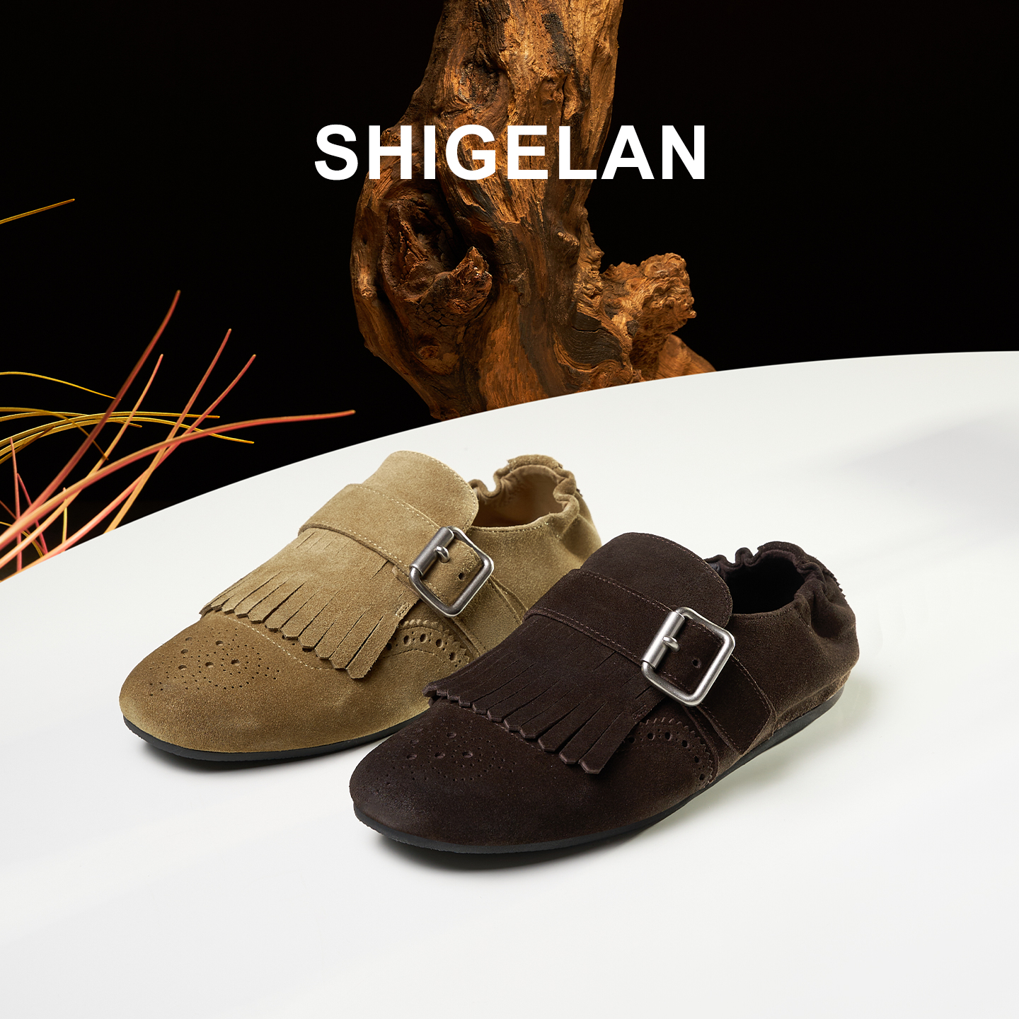 诗歌兰2025新款真皮平底乐福鞋女鞋复古风豆豆鞋一脚蹬懒人鞋单鞋
