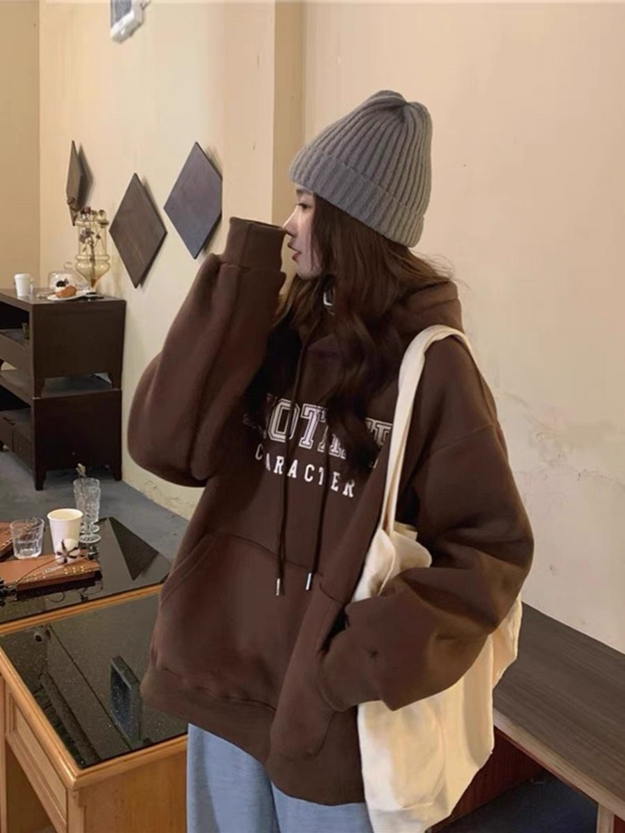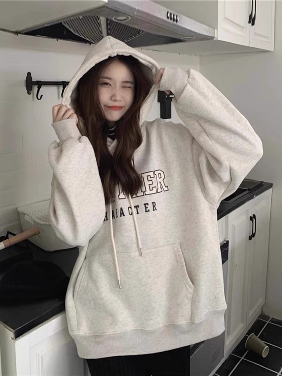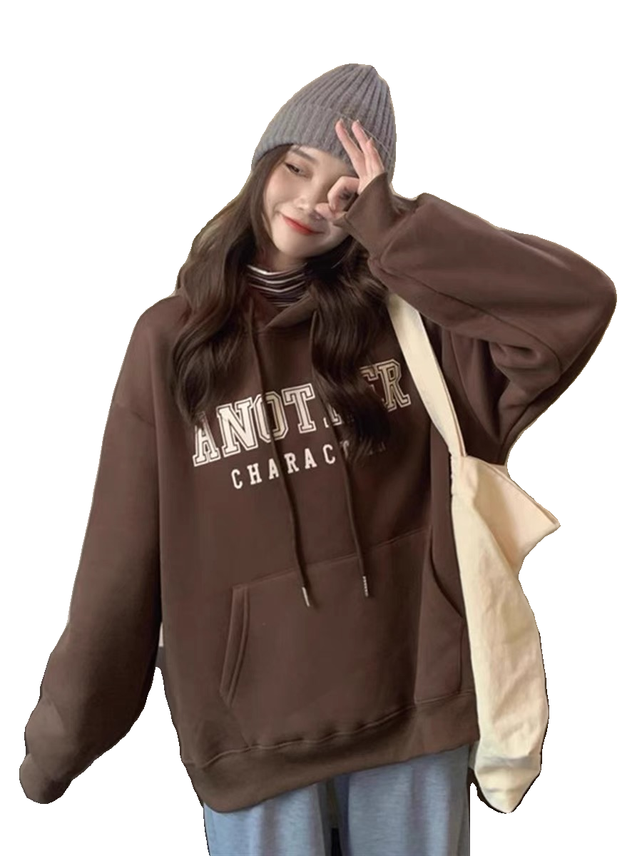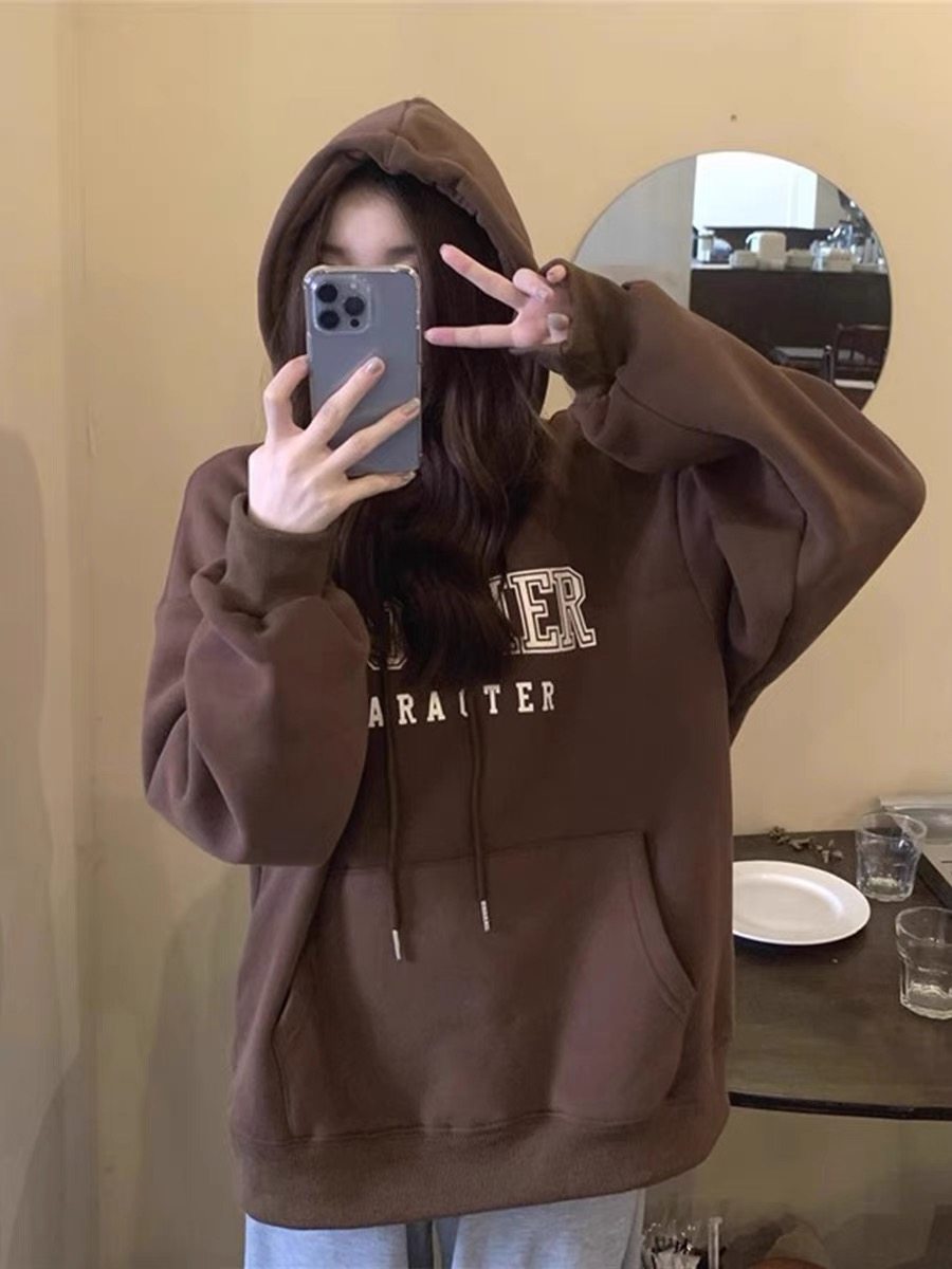 2023秋冬纯棉美式复古100%纯棉宽松休闲加绒加厚连帽卫衣长袖女潮