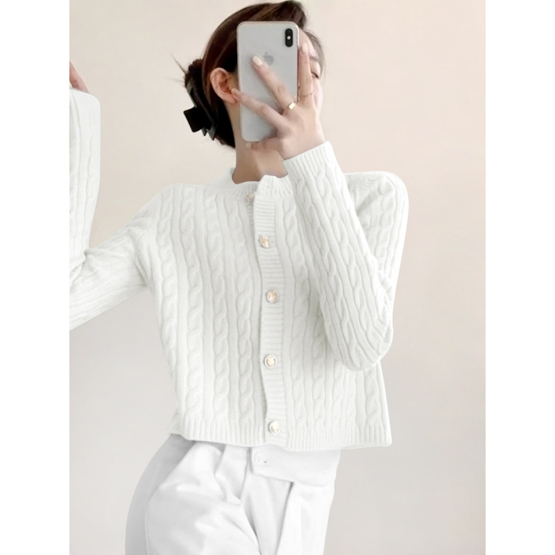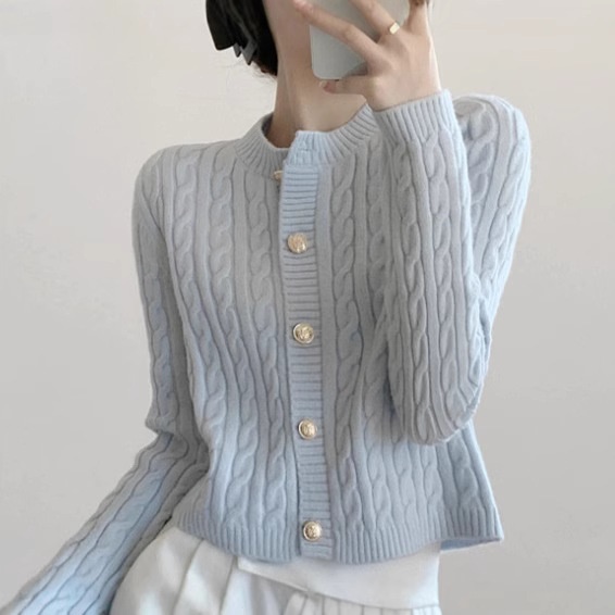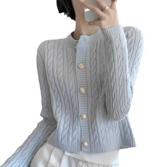 2025温柔风复古麻花圆领针织开衫女秋季软糯甜美气质时尚毛衣外套