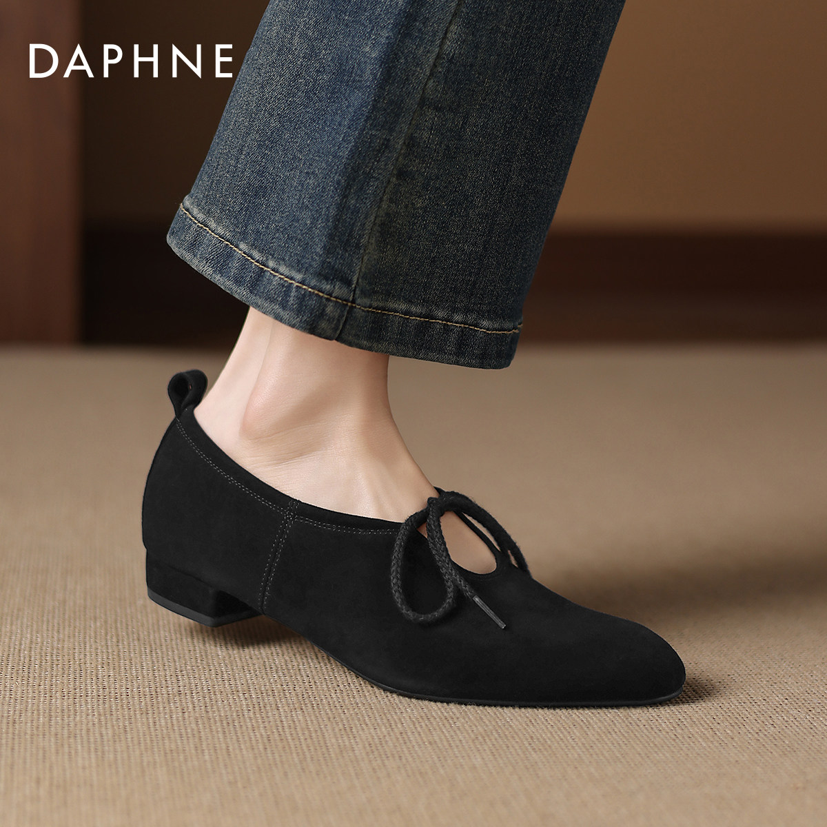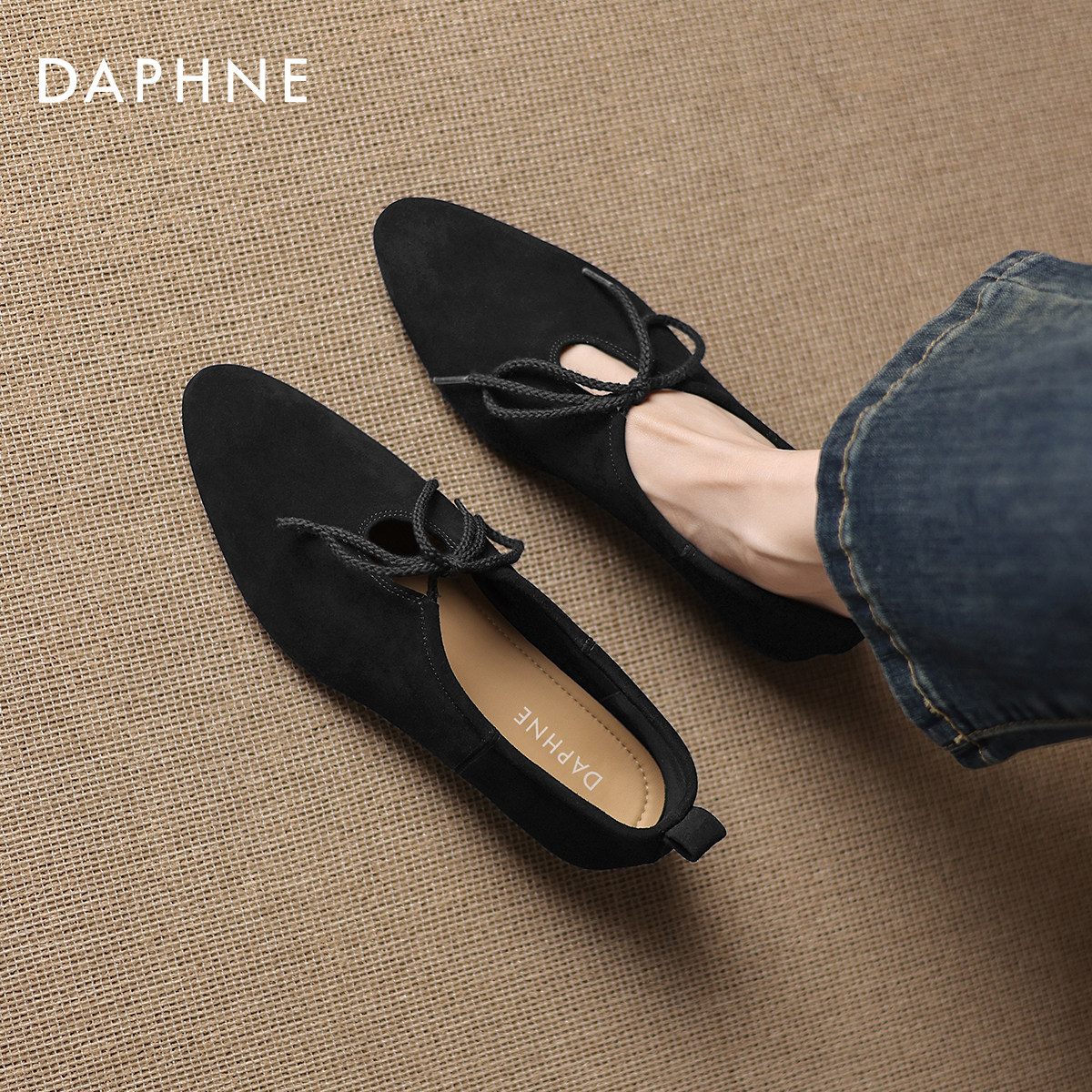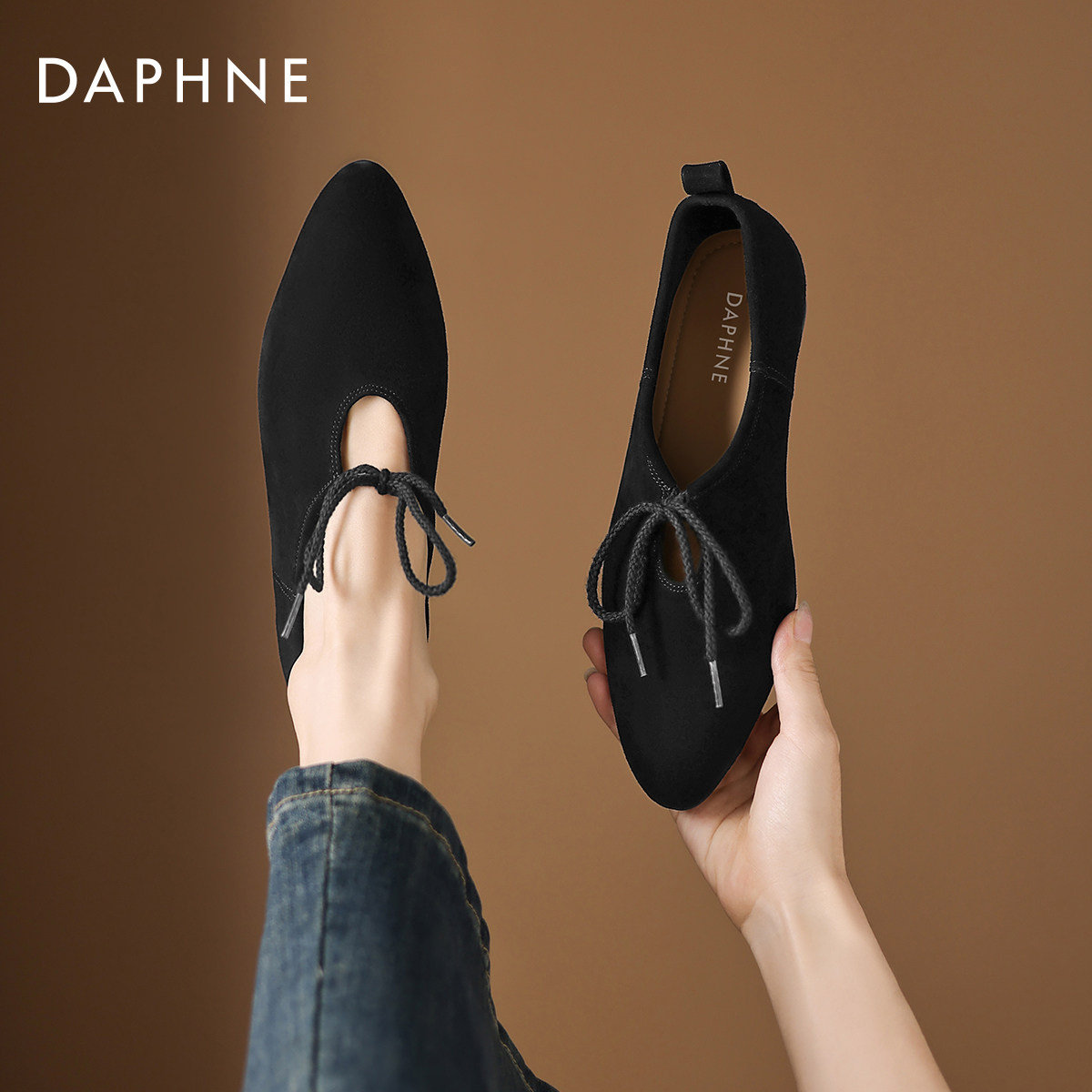 达芙妮尖头羊皮简约浅口单鞋女2025新款休闲英伦通勤舒适平底鞋子