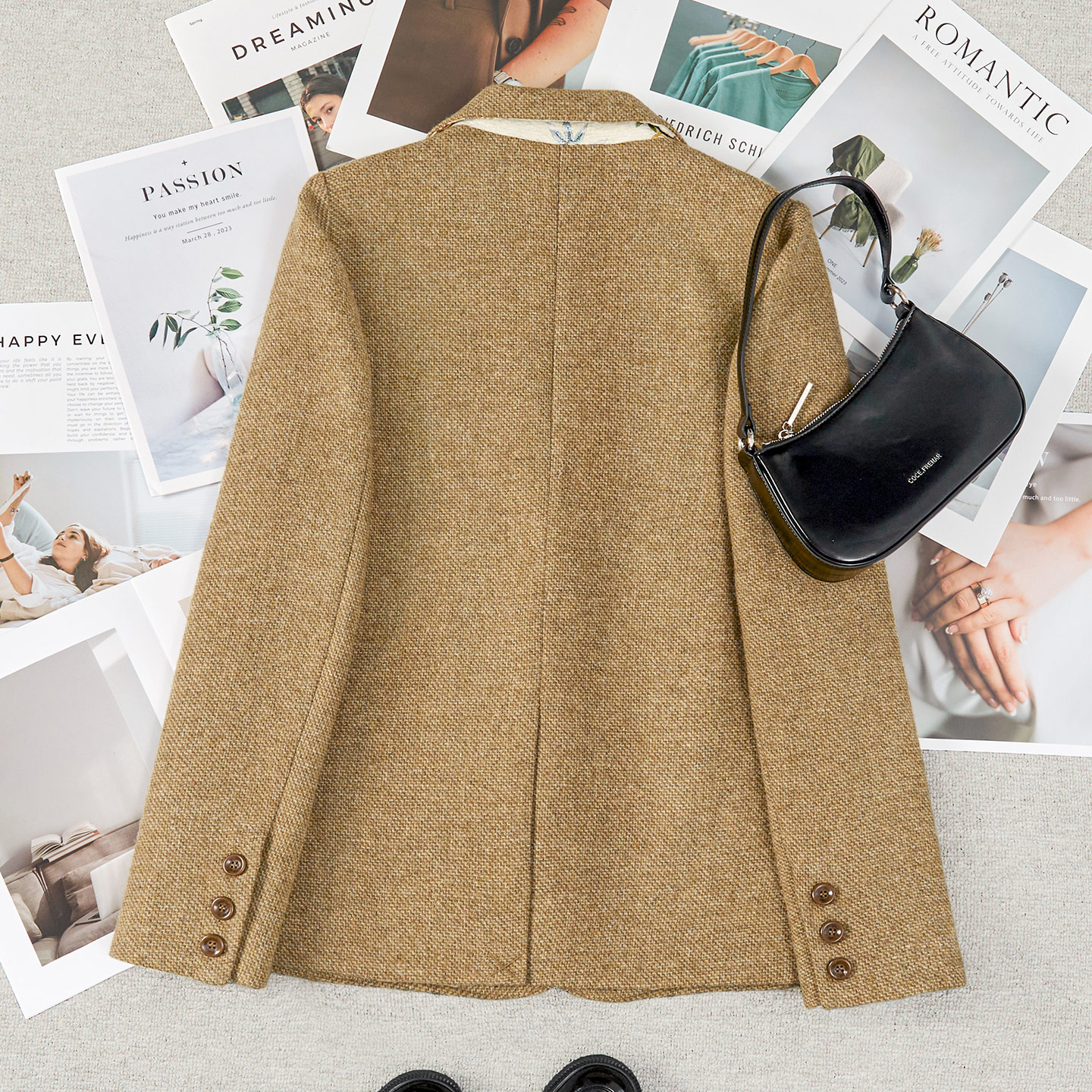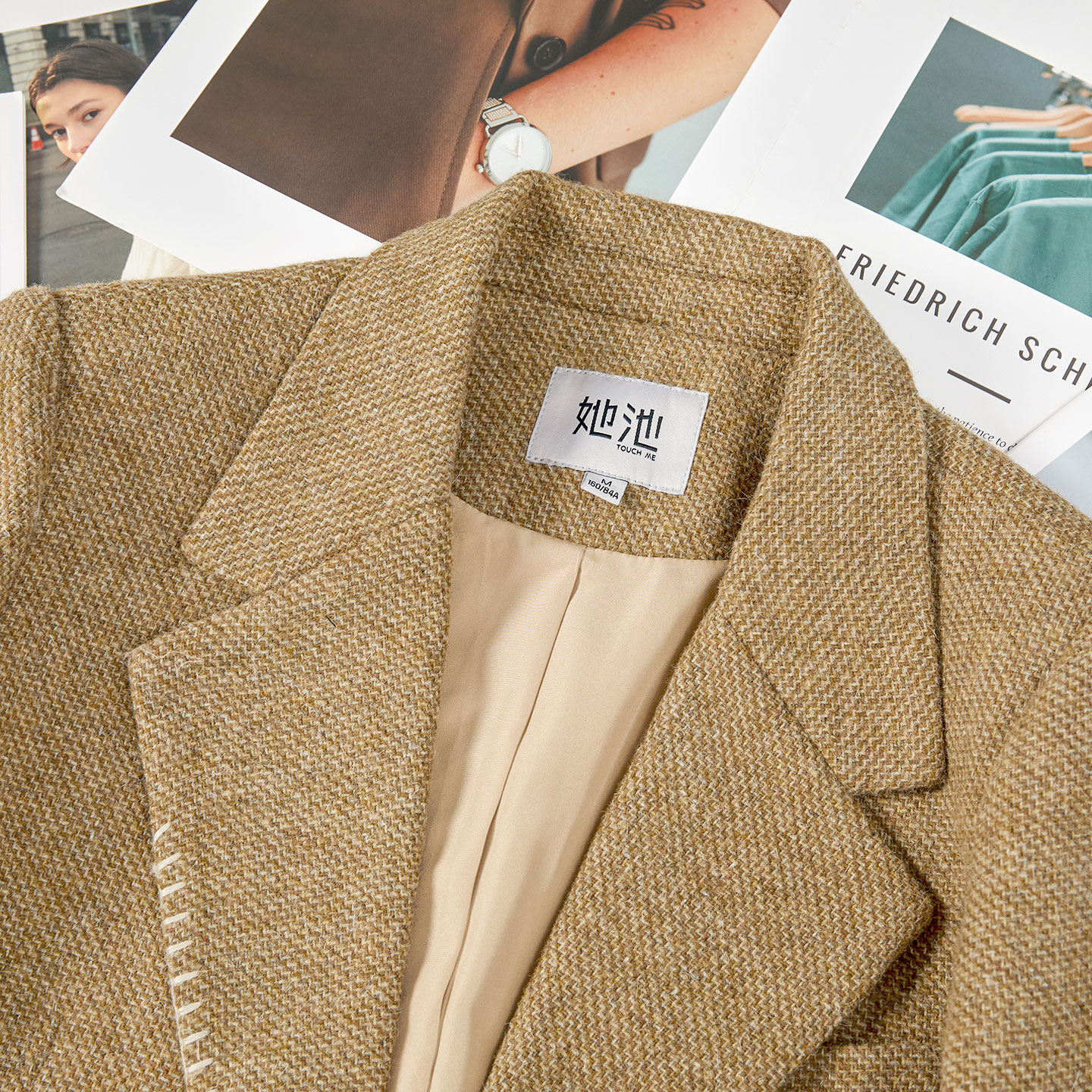 她池翻领西服2025秋装新款女装宽松款显瘦绵羊毛单排扣西装外套