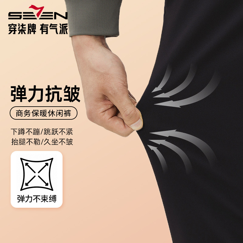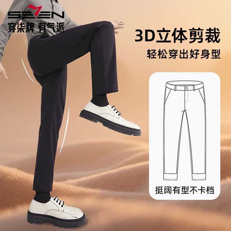 【保暖加厚】柒牌休闲裤男冬保暖厚款商务正装直筒休闲西装长裤子