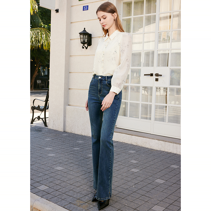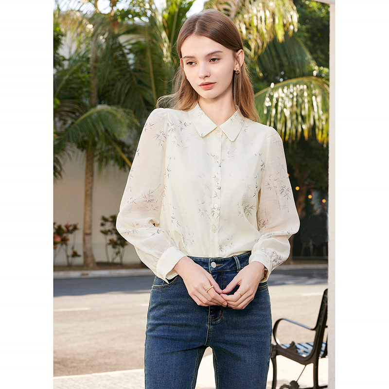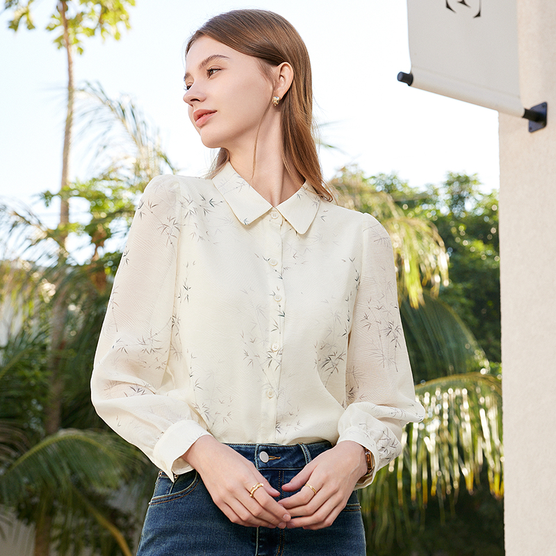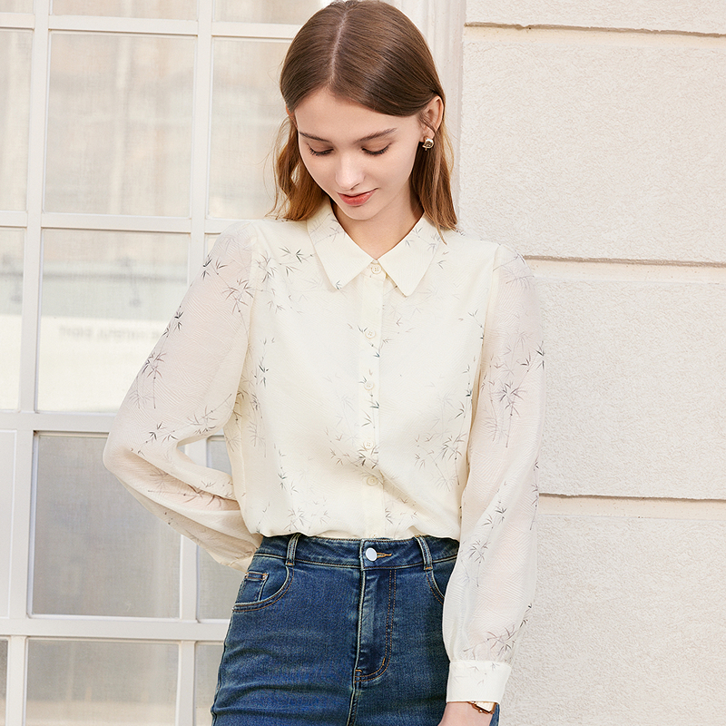 betu百图中国风衬衫春夏中国风竹韵印花长袖女式衬衫