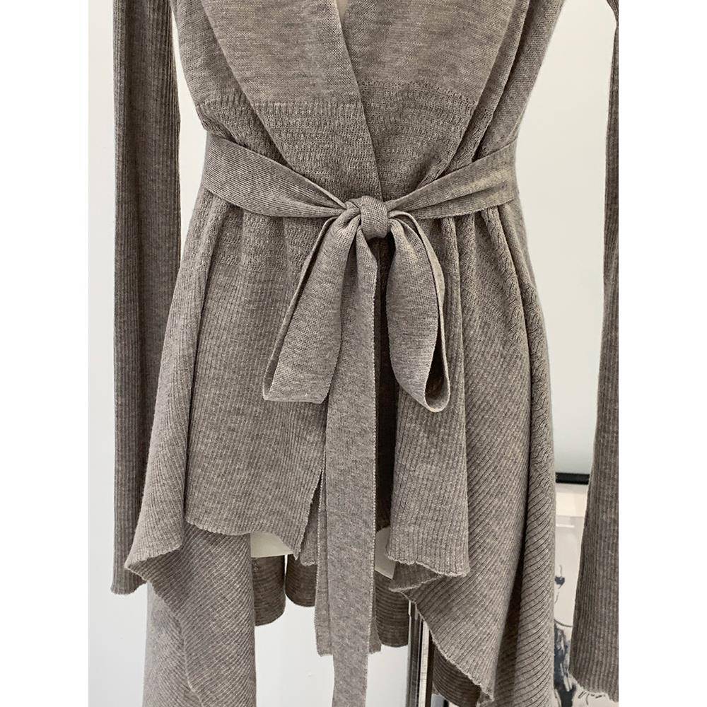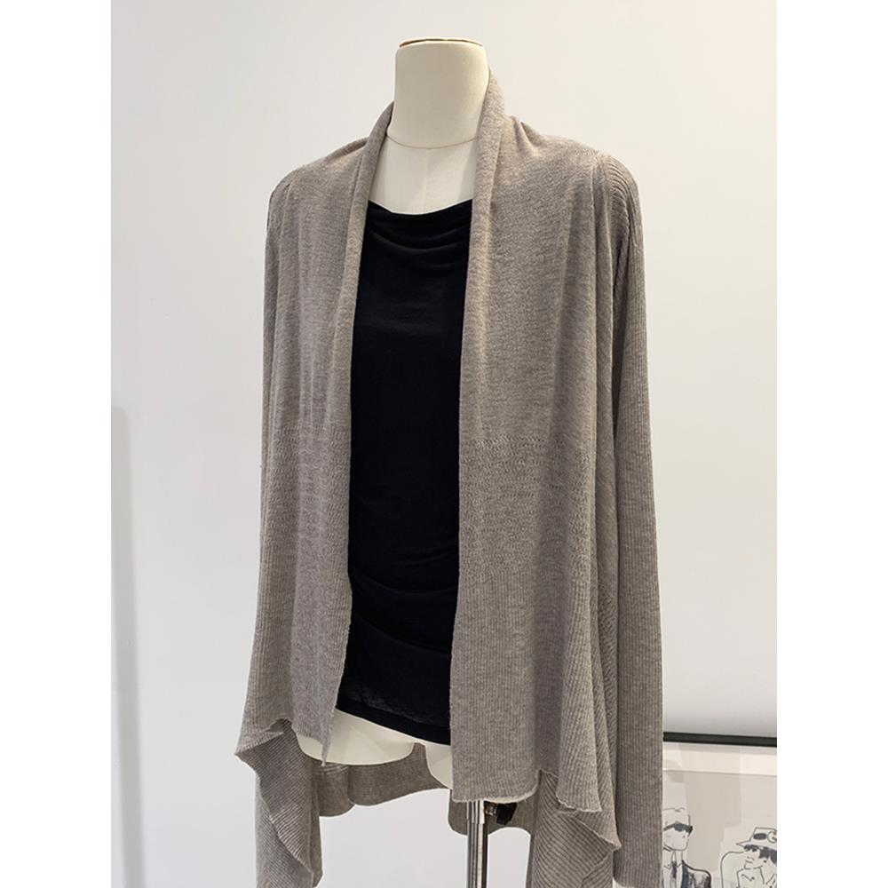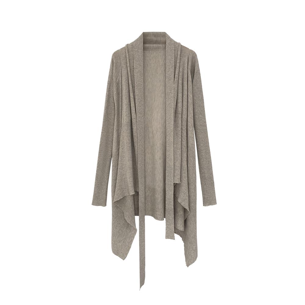 纸片人穿搭不规则慵懒薄款针织开衫外套女春清冷感气质中长款上衣