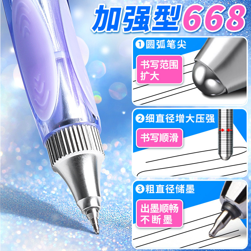 晨光防晃动按动中性笔正品官方旗舰店加强668全针管速干秒干顺滑刷题笔0.5mm水笔碳素黑色学生考试办公专用