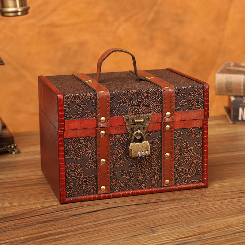 复古小木箱子整理收藏密码盒带锁