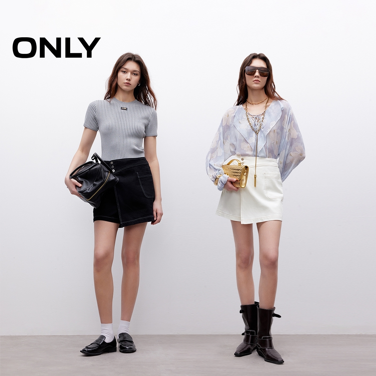 ONLY2025夏季新款个性时髦高腰A字裤裙短裤牛仔裤女|125243002