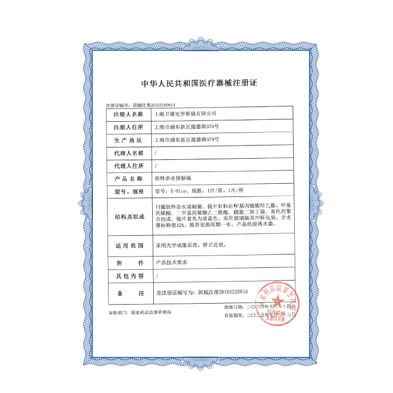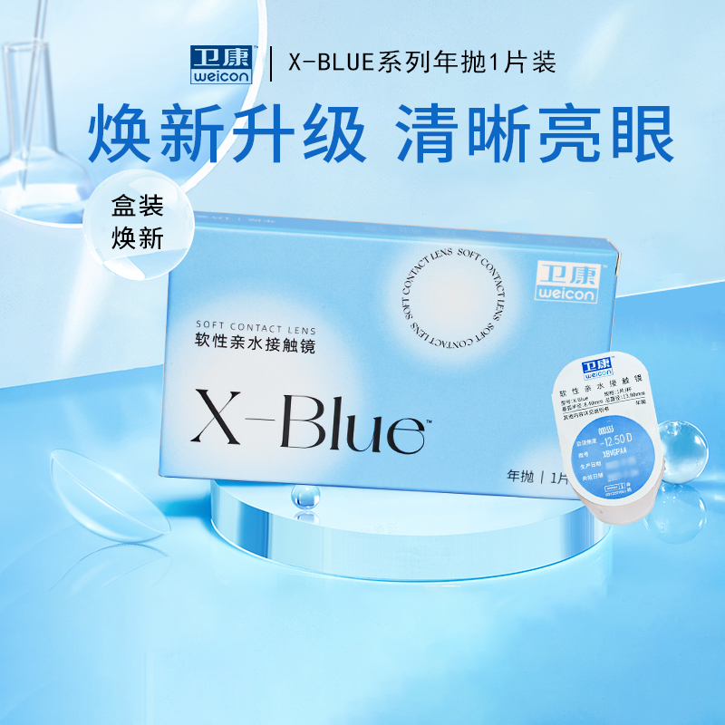 卫康x-blue年抛1片装隐形近视隐形眼镜水润透明高度数男女正品SL