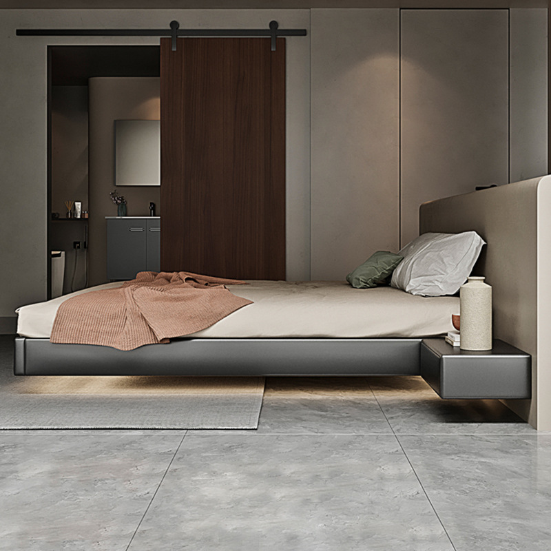 现代简约真皮床头层牛皮小户型悬浮床卧室双人床主卧皮艺大床家具