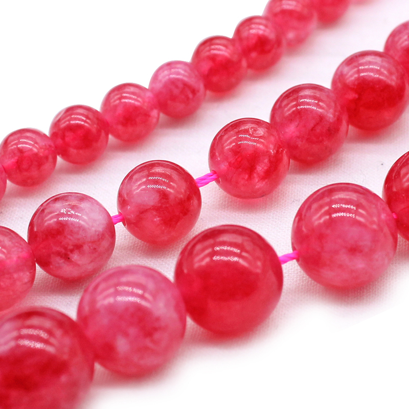 冰种晶透蔷薇辉石红纹玉髓圆珠散珠diy手工串项链耳坠配饰半成品