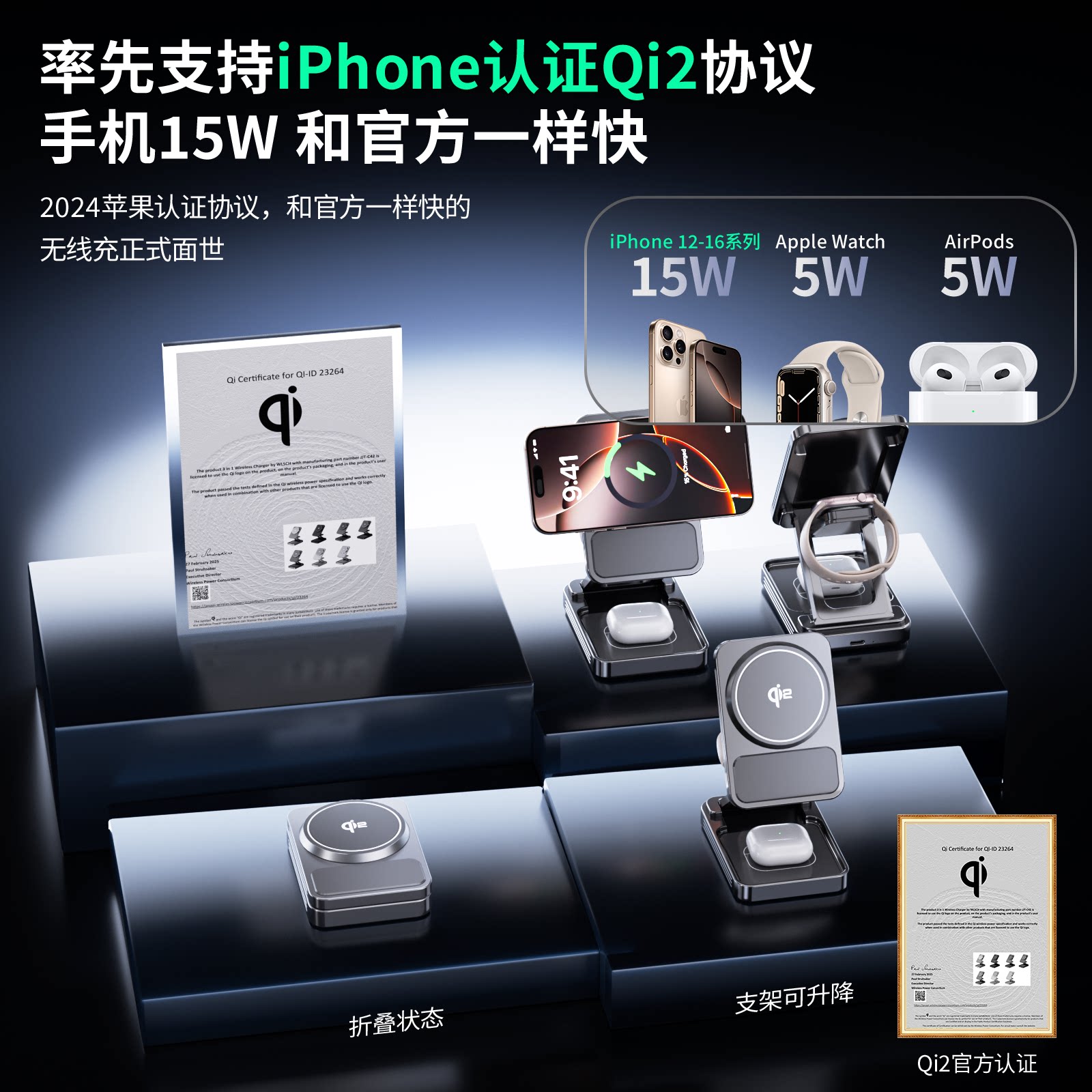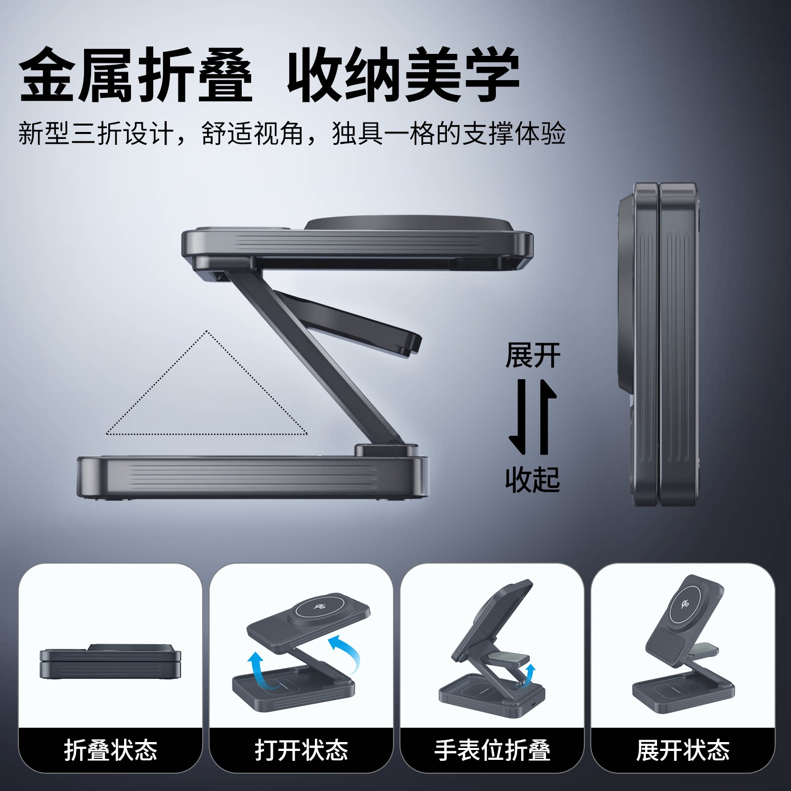 Aresh金属磁吸magsafe磁吸式三合一无线充电器适用苹果16Pro手表iWatch底座iPhone手机耳机applewatch支架