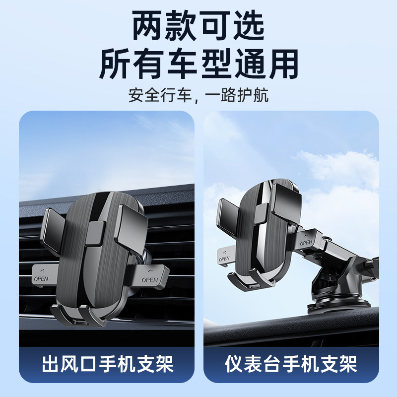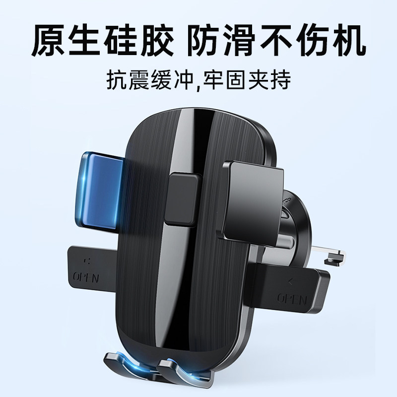 新款车载手机导航支架出风口防抖通用横竖屏带螺旋钩重力感批发
