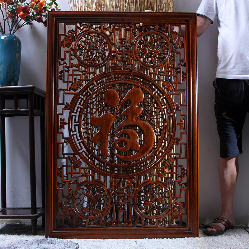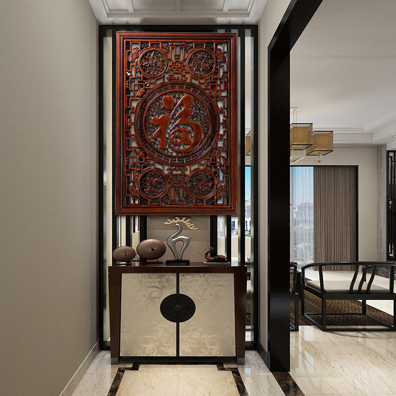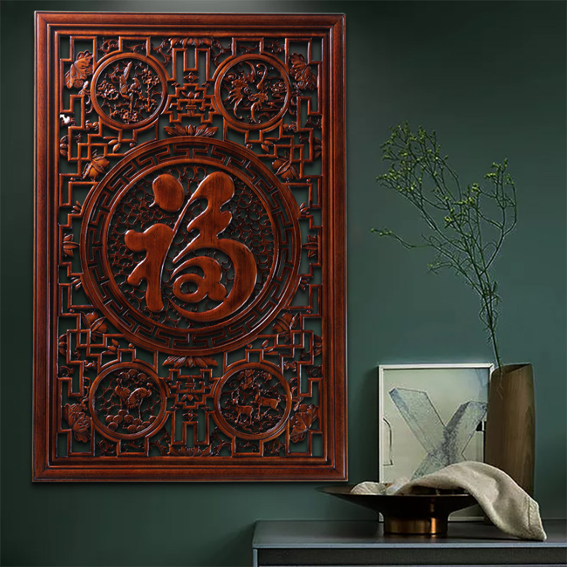 东阳木雕挂件香樟木头雕刻画中式客厅玄关艺术室内装饰长方形福字