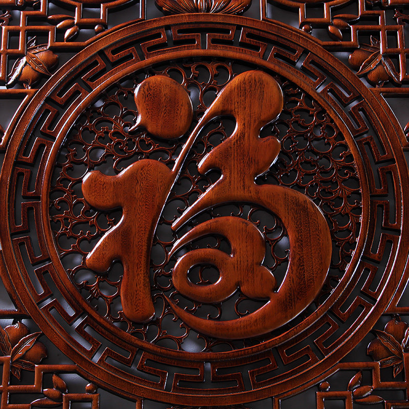 中式东阳木雕香樟木福字