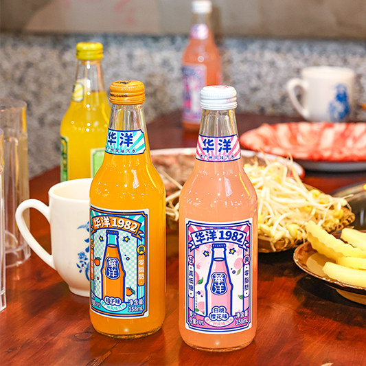 华洋汽水橙子荔枝饮料玻璃瓶