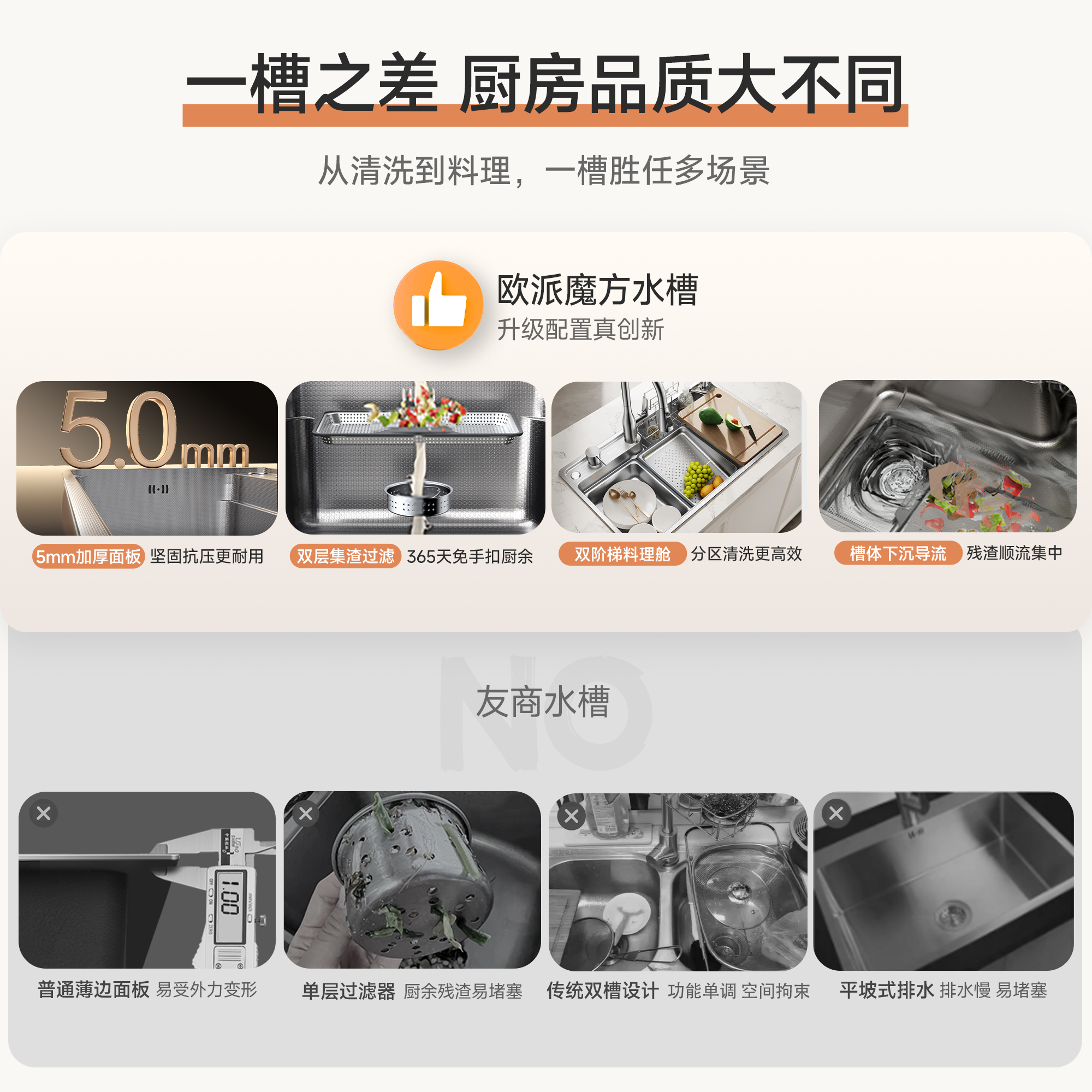 欧派魔方T5日式厨房洗菜盆水槽大单槽加厚304不锈钢洗碗家用