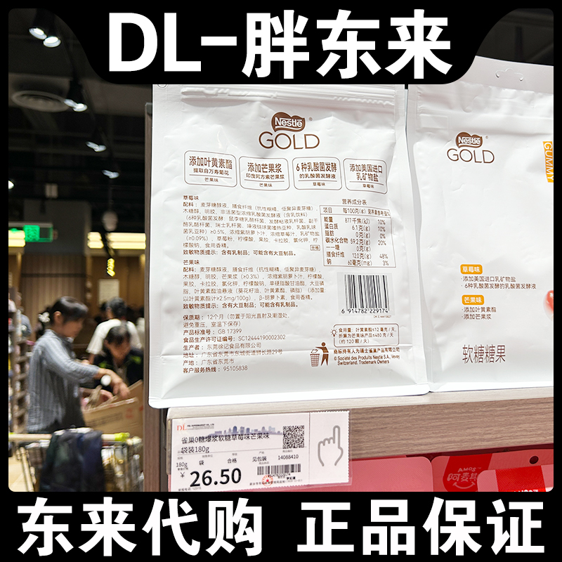 胖东来超市代购雀巢0糖爆浆软糖草莓味芒果味袋装180g纯糖糖果