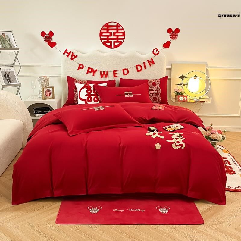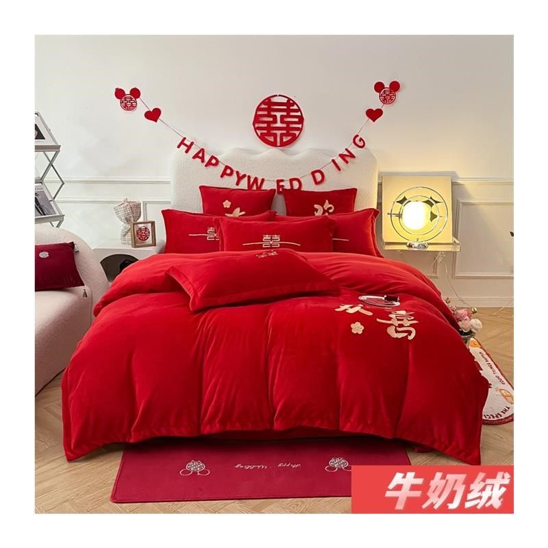 结婚礼床上用品四件套婚庆大红色喜庆被套床单简约高级感陪嫁