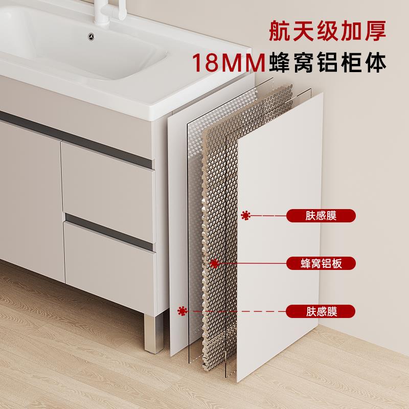 skze蜂窝铝合金落地浴室 柜 组合加深陶瓷一体盆洗手洗脸池卫浴 柜 洗漱台摆件饰品