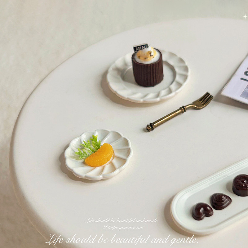 微缩餐碟马卡龙色餐具碟ob11娃娃屋配件迷你花纹碟子摆件模型D592