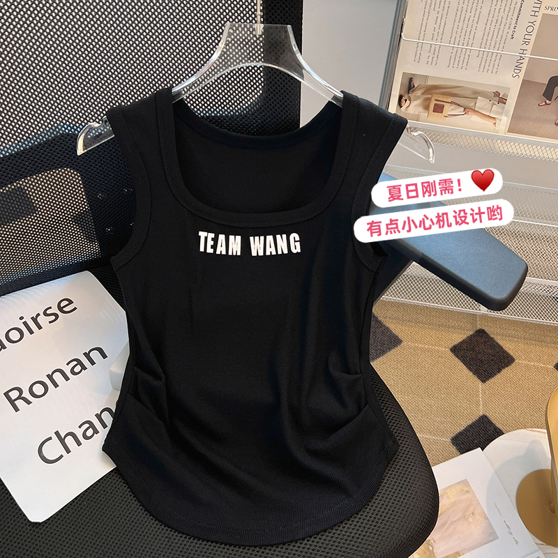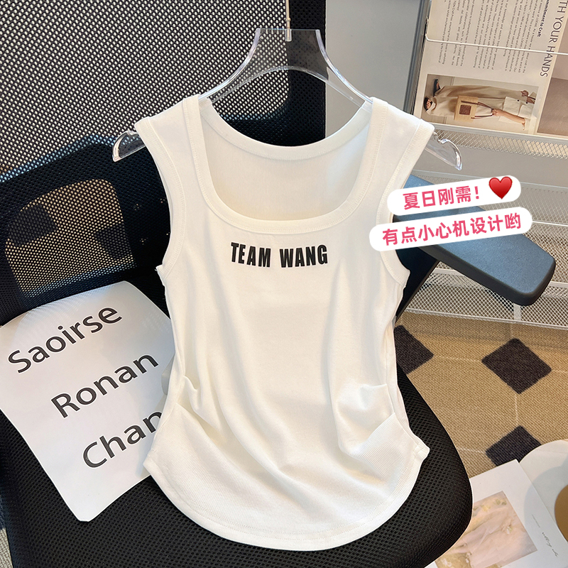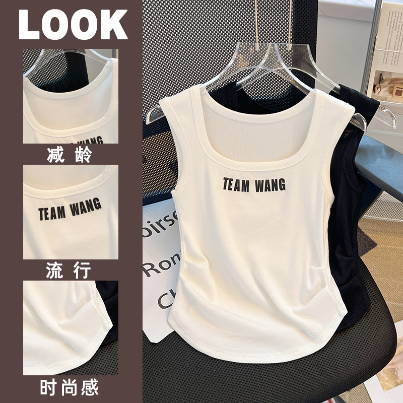 白色字母背心女2024新款夏季外穿美式小吊带辣妹无袖遮副乳上衣潮
