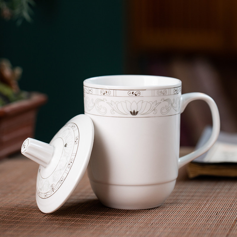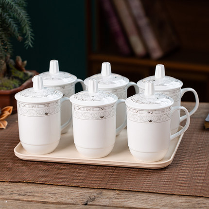 景德镇 陶瓷带盖茶杯套装家用泡茶现代中式杯子6只装带茶盘可定制