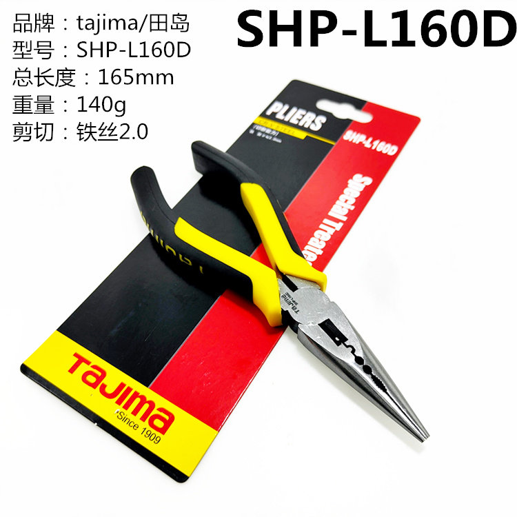 日本tajima田岛尖嘴钳SHP-L160 200带剪切合金钢尖口多用钳子6寸