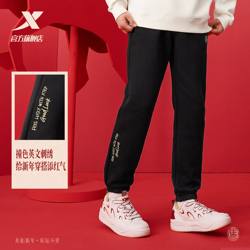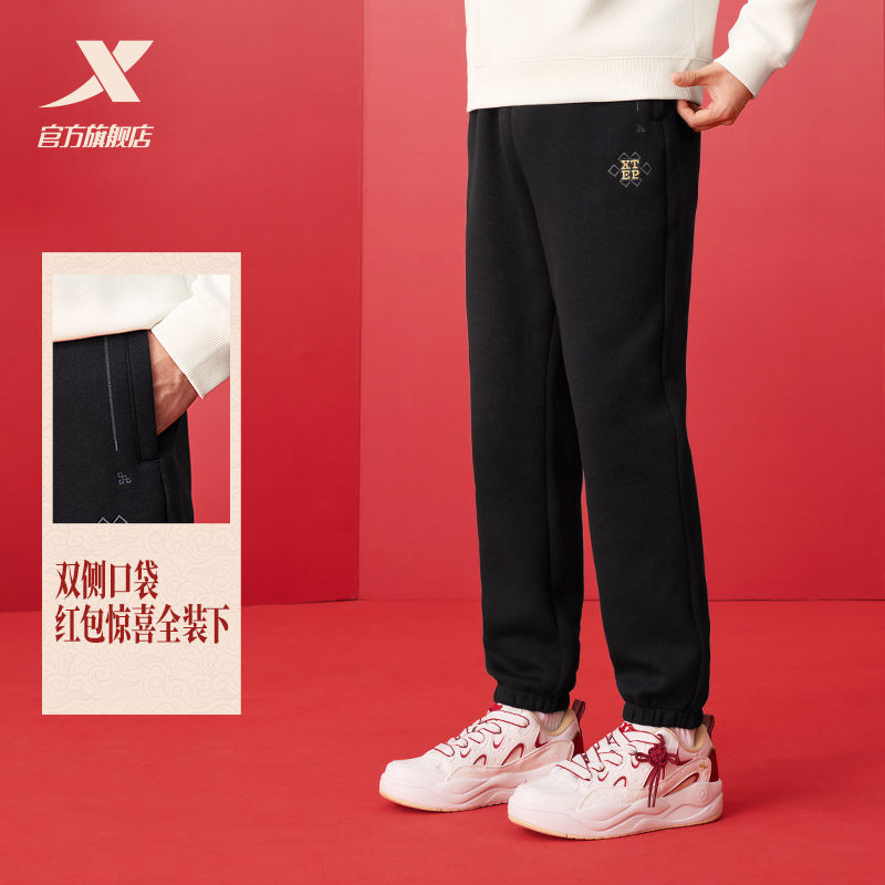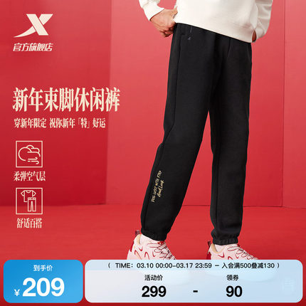 特步新春系列 | 束脚卫裤男款春季黑色运动裤针织长裤百搭休闲裤