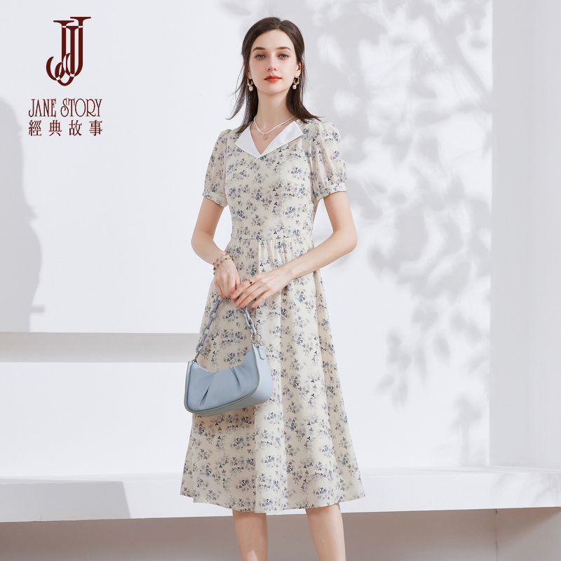 经典故事2025新款夏季显瘦碎花连衣裙女小个子高端精致气质长裙