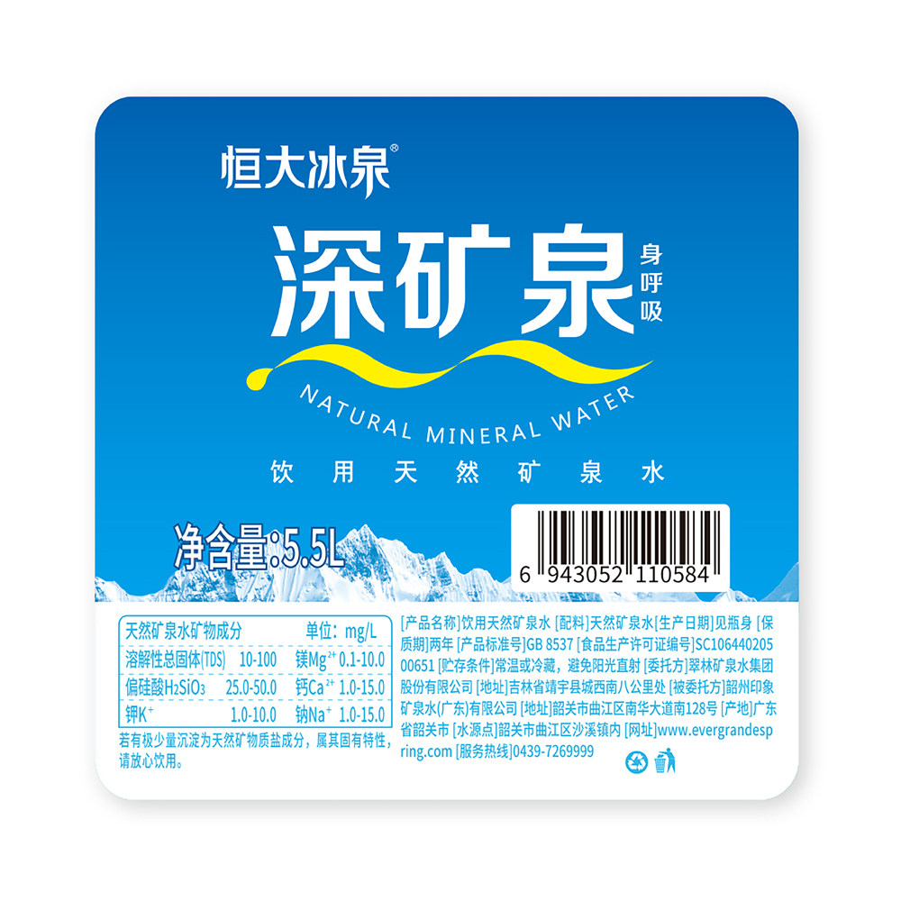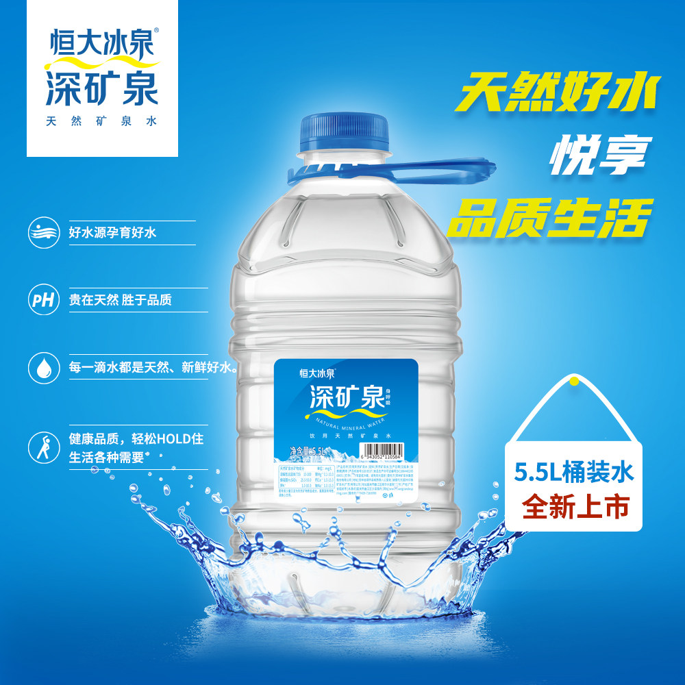 恒大冰泉饮用天然矿泉水5.5L*4桶整箱包邮大桶装水深矿泉泡茶水