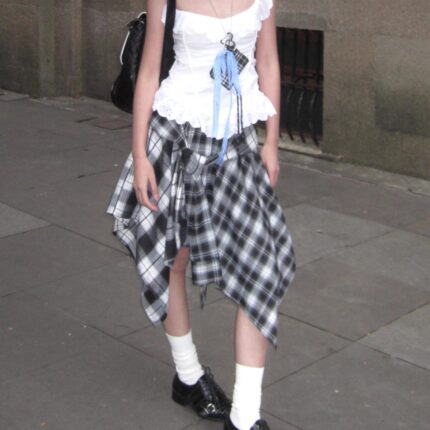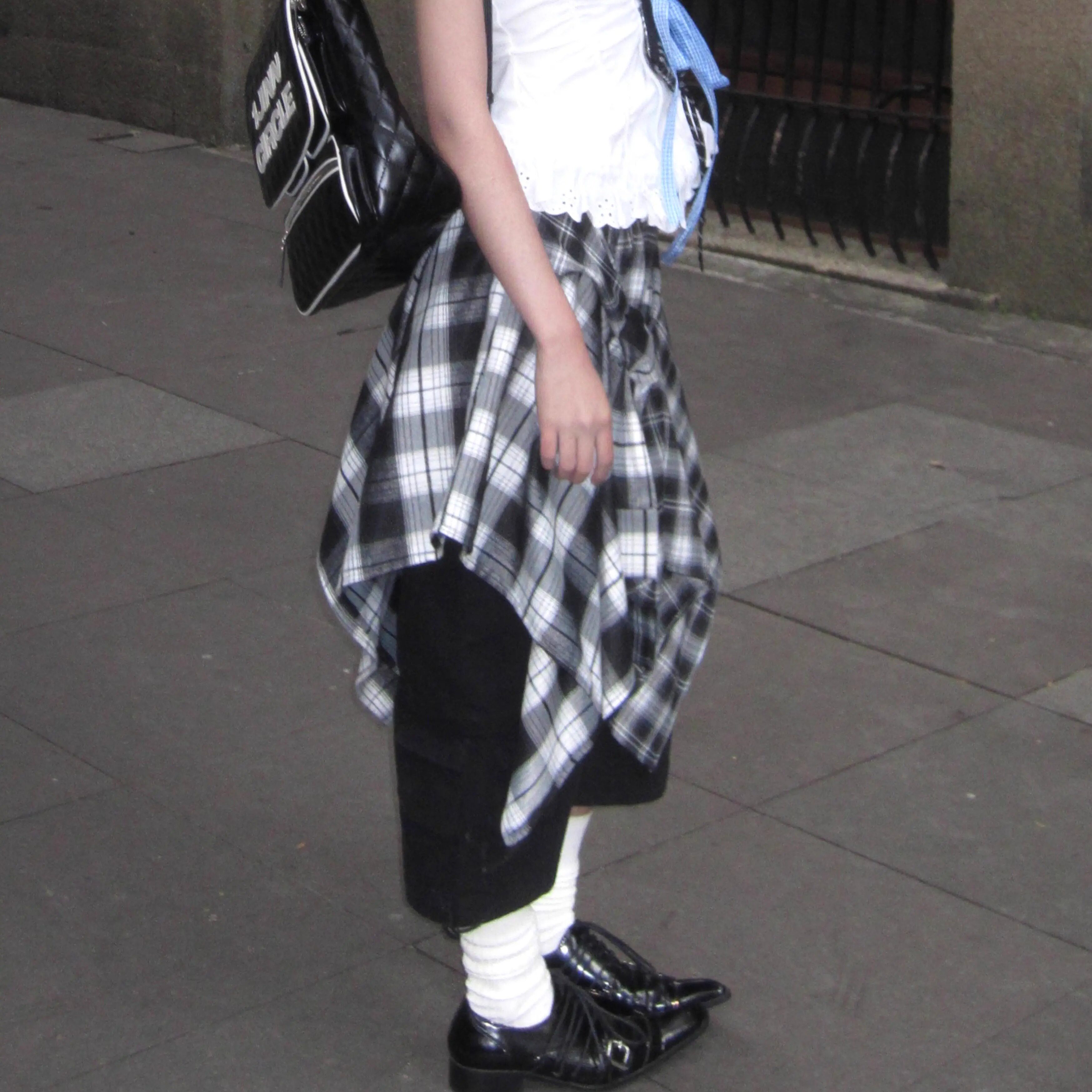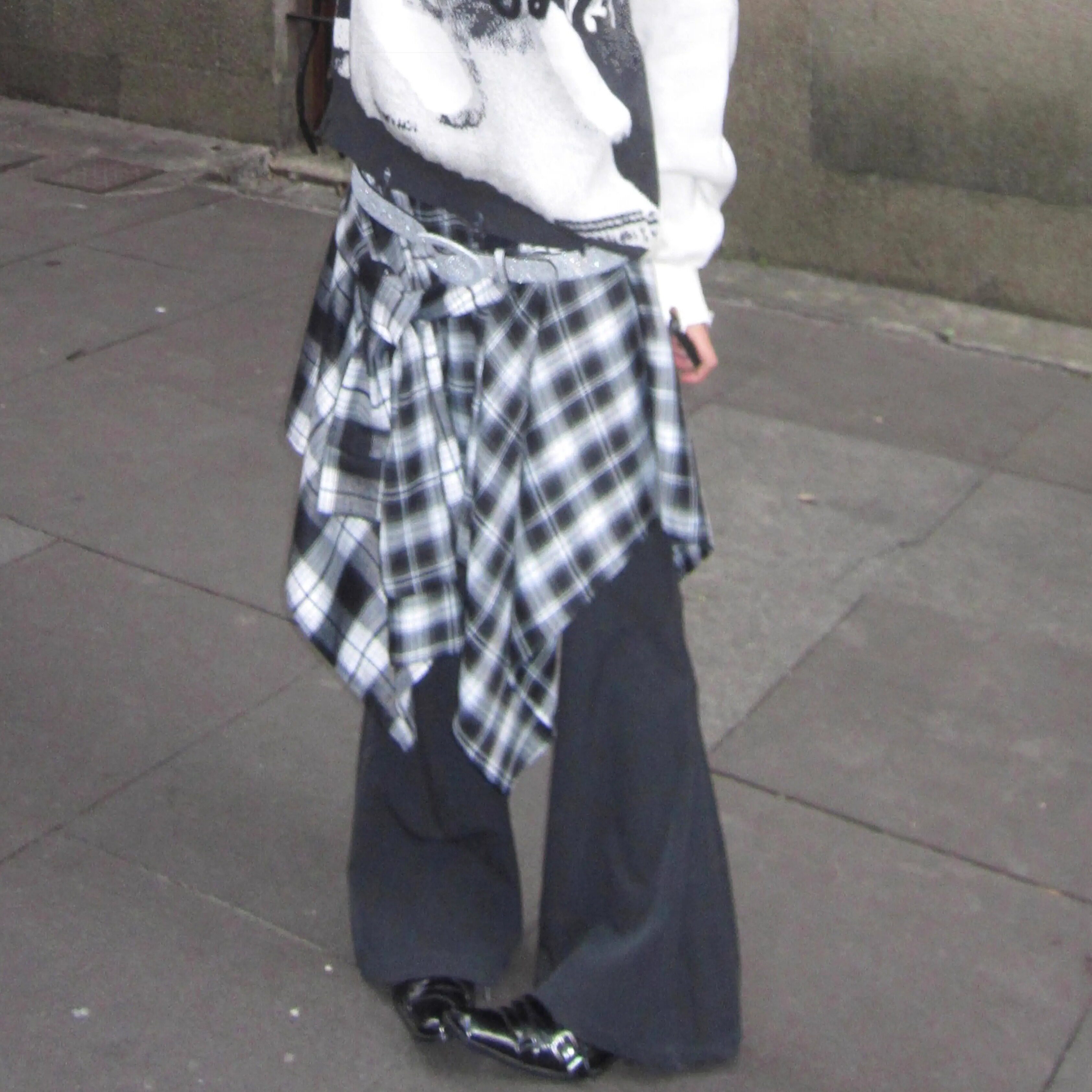 OOURSLAB原创不规则学院风格子半裙设计感拼接黑白格松紧腰半身裙