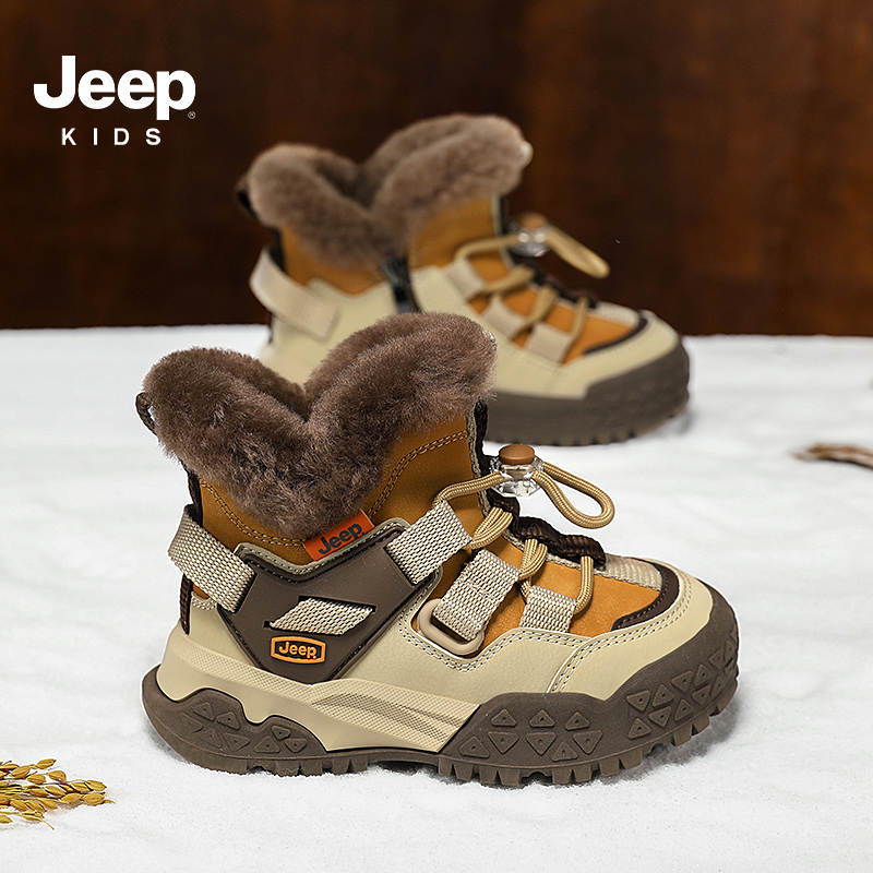 Jeep男童雪地靴东北户外冬季男孩棉靴加绒加厚儿童防滑防水滑雪鞋