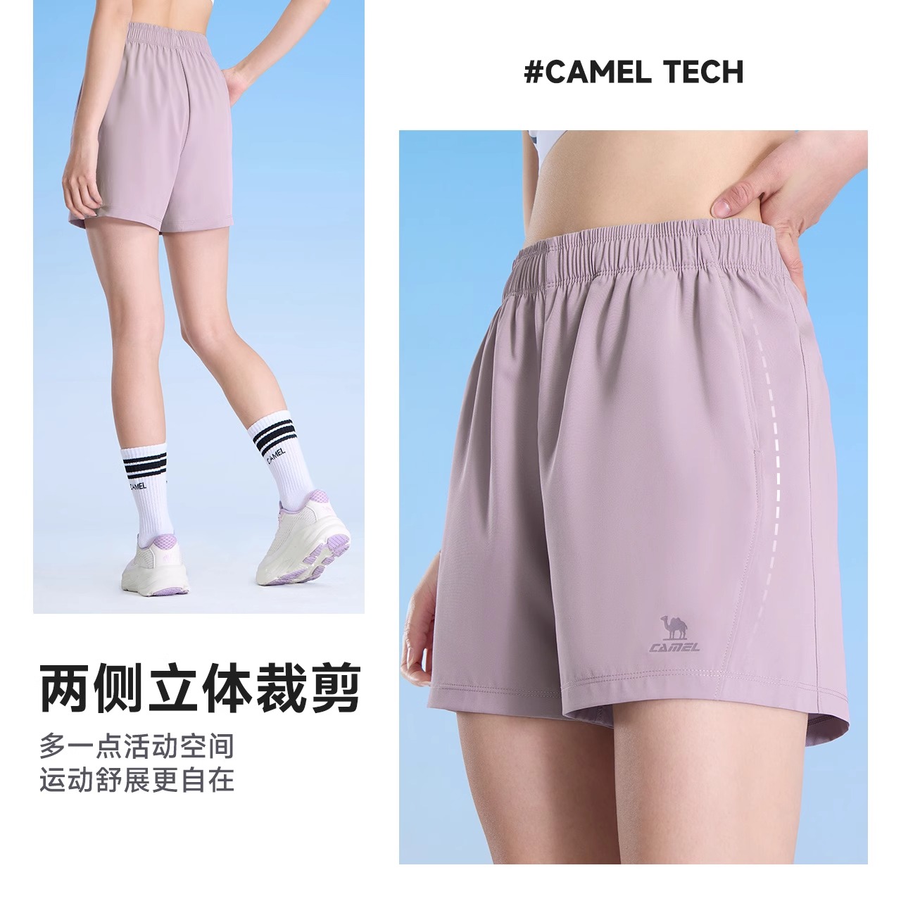 骆驼女装速干短裤2025夏季新款透气宽松弹力薄款跑步五分裤子