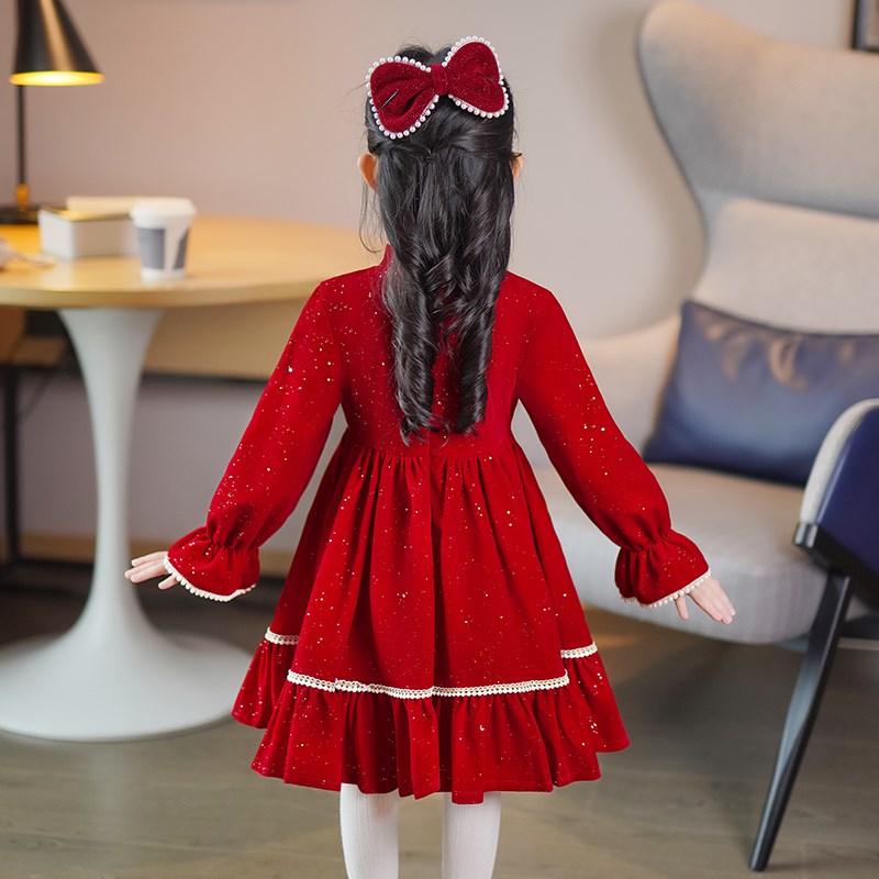 公主裙女童秋冬2023冬装儿童连衣裙过年旗袍汉服新年衣服裙子冬季