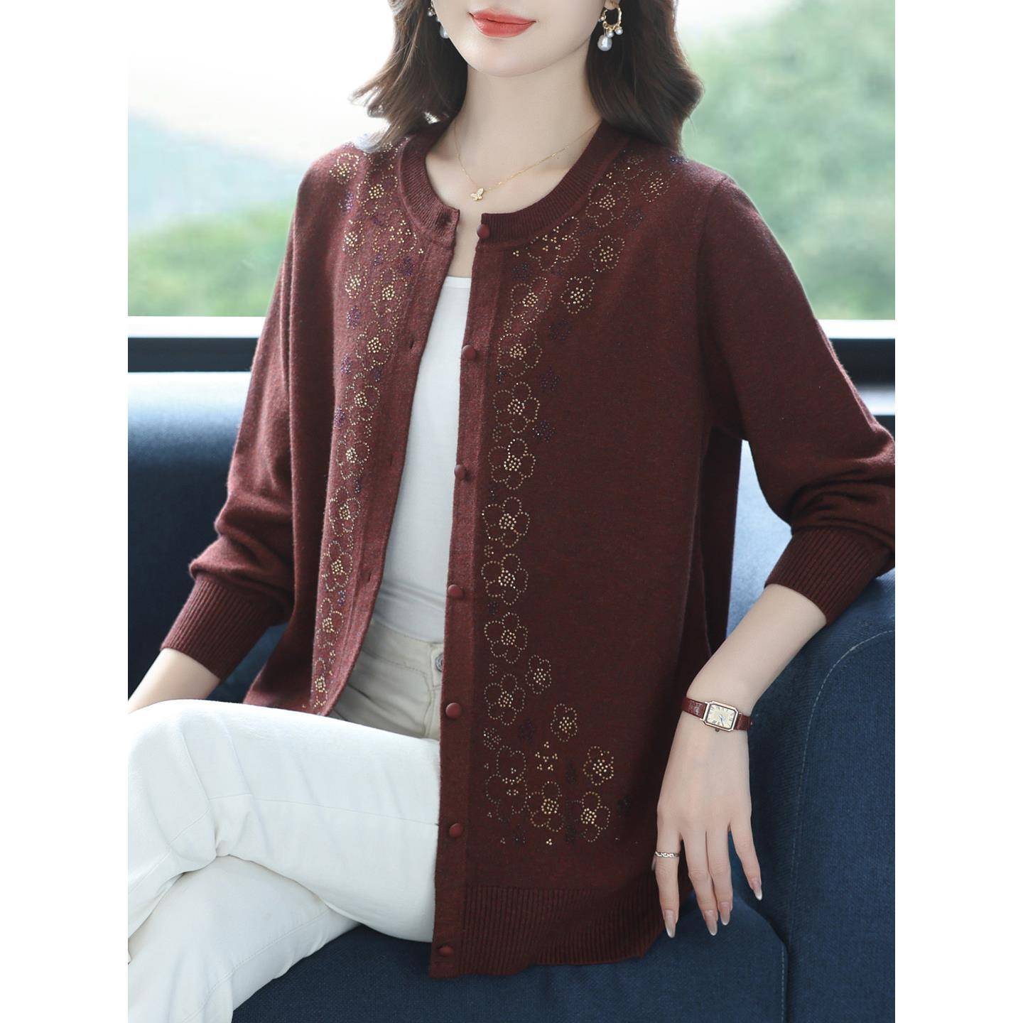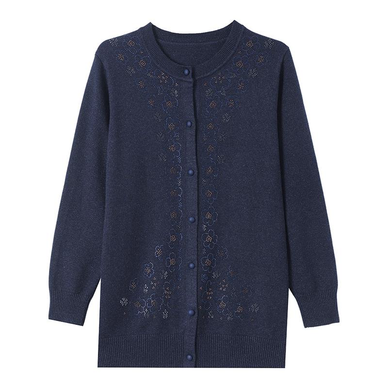 中老年妈妈秋装宽松外套洋气高贵针织开衫特大码女装绣花羊绒外搭