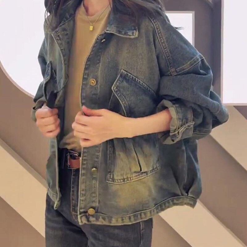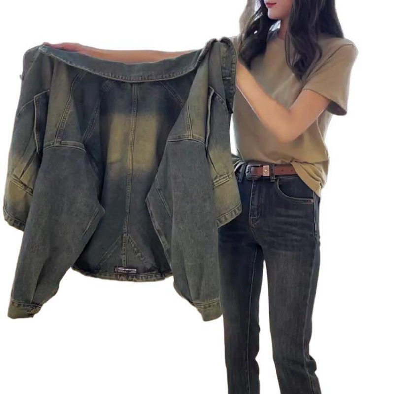秋冬季新大口袋牛仔外套矮小个子女生休闲大码夹克洋气上衣